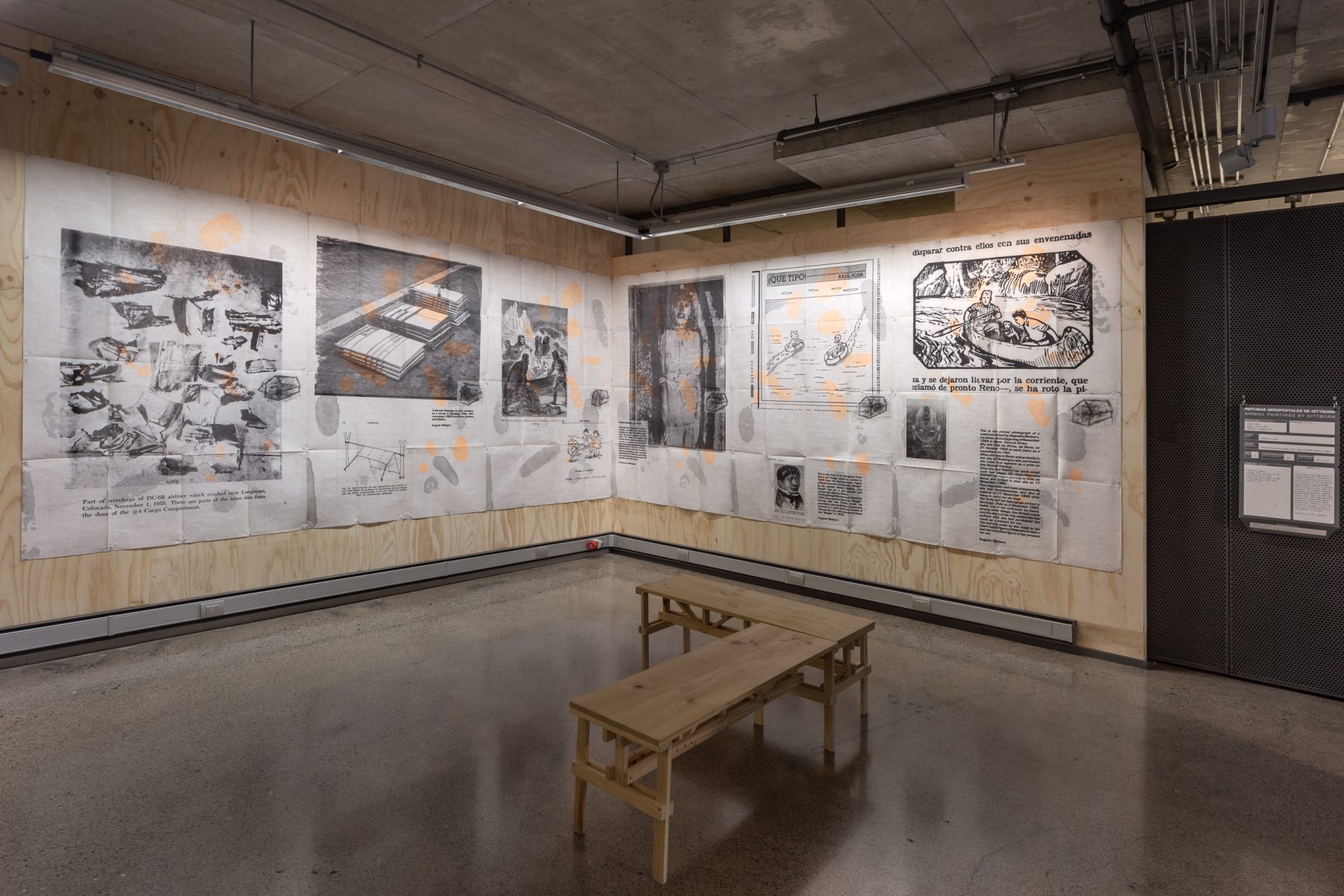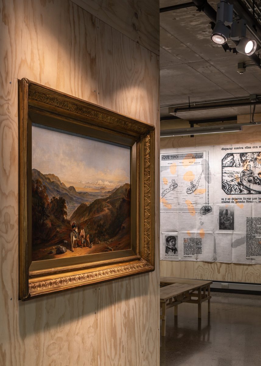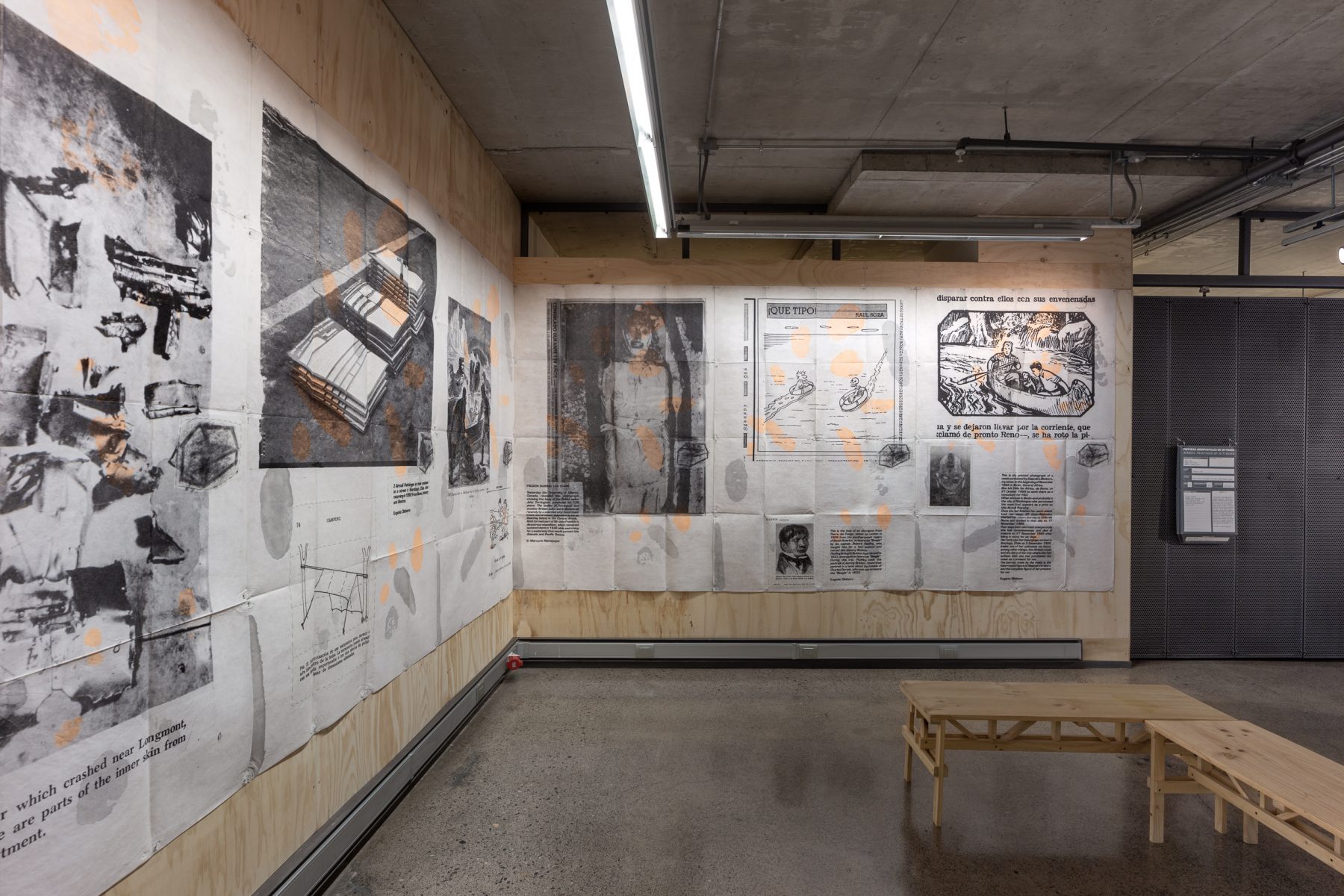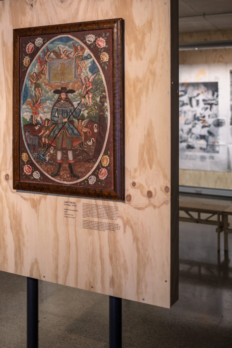 Este exhibición se divide en tres secciones: en la primera, se presentan los trabajos de los artistas chilenos Juan Dávila (1846), Eugenio Dittborn (1943) y la artista Nury González (1960); en la segunda, se sitúan las obras del alemán Johann Moritz Rugendas (1802 – 1858) y el artista venezonalo Christian Vinck (1978); y en la tercera, nos encontramos con el trabajo de la artista mexicana Teresa Margolles (1963) y del artista ecuatoriano Adrián Balseca (1989). Cada una de estas secciones adopta la forma de un pliegue en el que se atiende con singularidad una hipótesis que se devela como recuerdo. La figura del pliegue, que proviene en este caso particular de la práctica y pensamiento del artista Eugenio Dittborn, nos permite imaginar un escenario en el cual los lugares y tiempos inscritos en estos espacios chocan, se yuxtaponen e invierten entre sí.