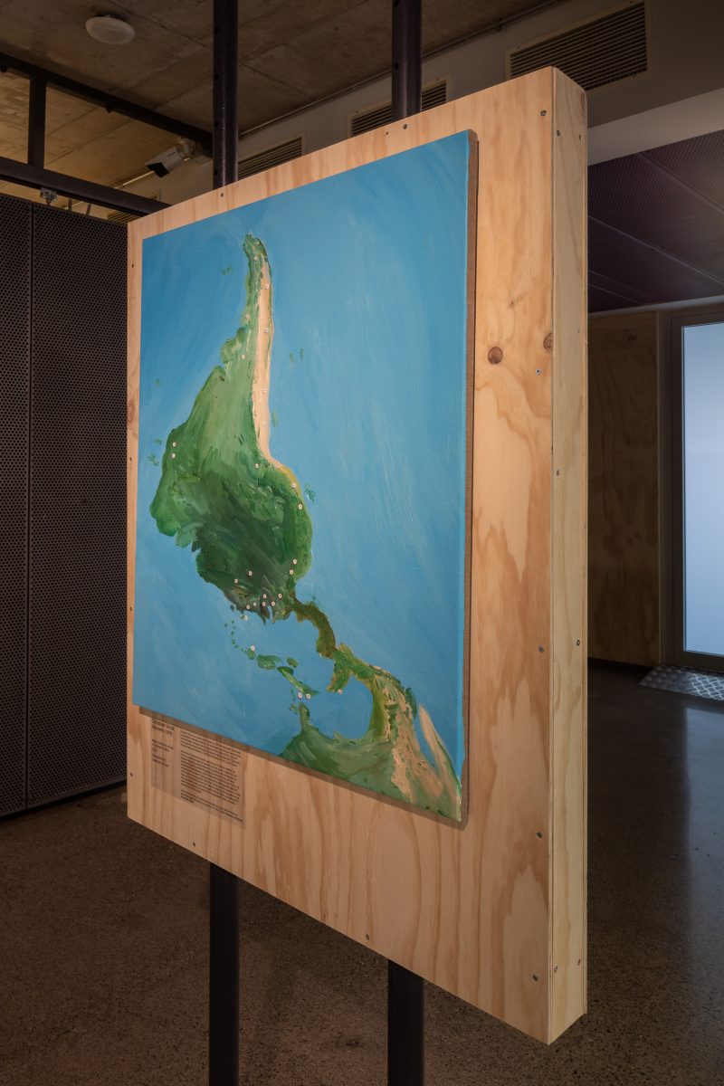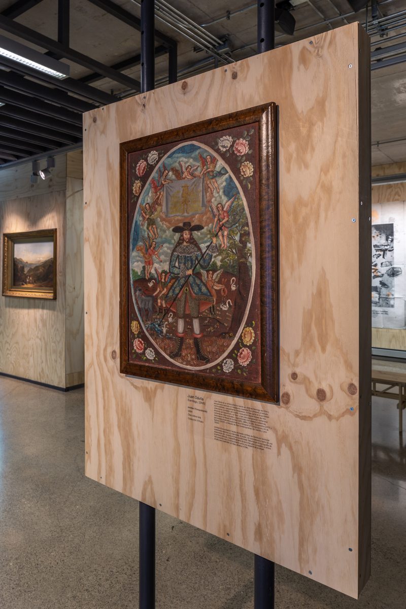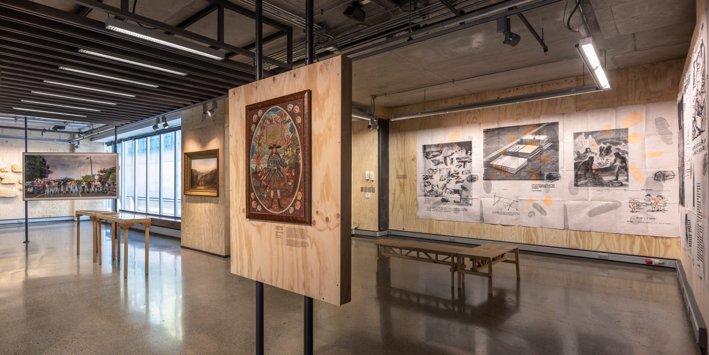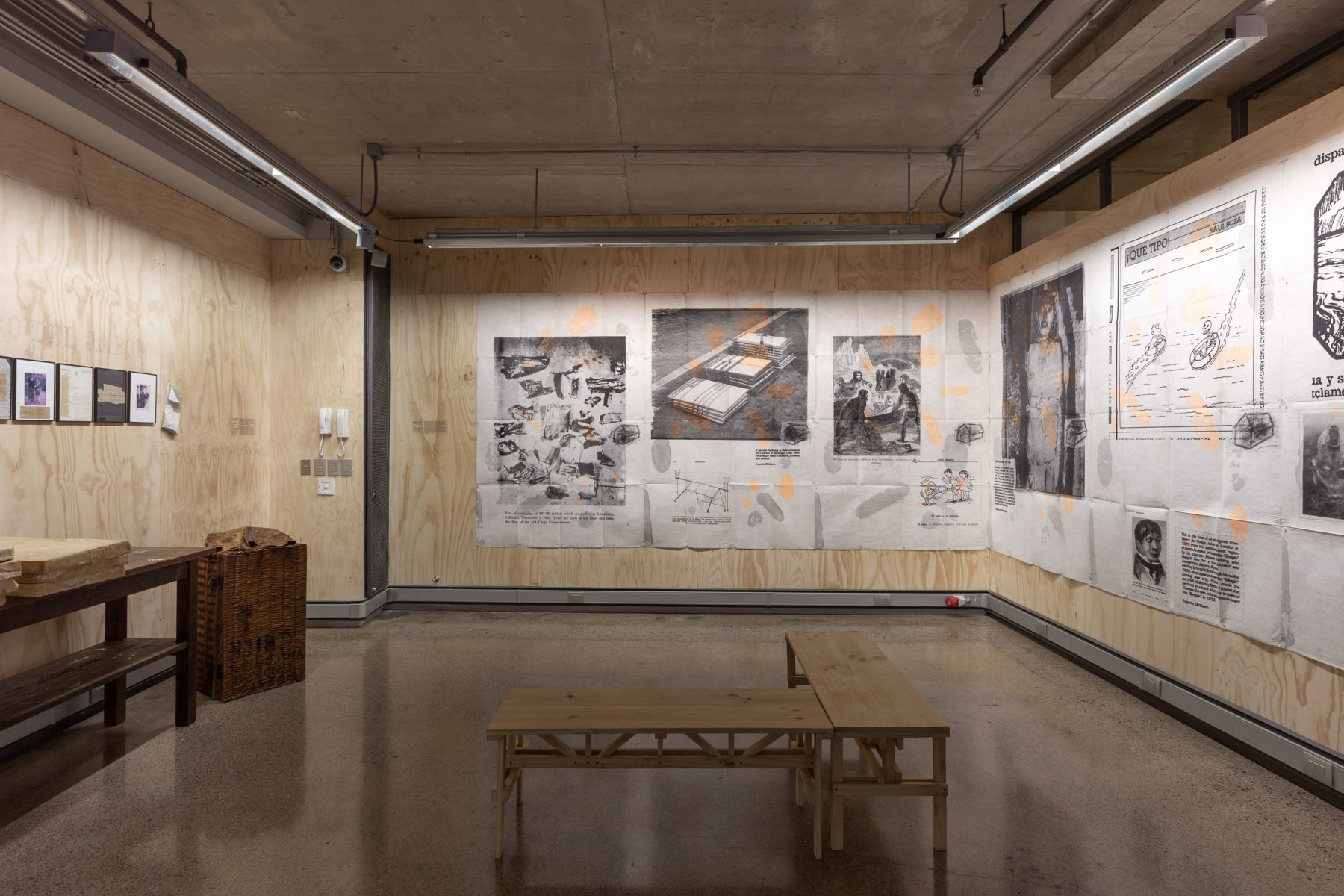 Este exhibición se divide en tres secciones: en la primera, se presentan los trabajos de los artistas chilenos Juan Dávila (1846), Eugenio Dittborn (1943) y la artista Nury González (1960); en la segunda, se sitúan las obras del alemán Johann Moritz Rugendas (1802 – 1858) y el artista venezonalo Christian Vinck (1978); y en la tercera, nos encontramos con el trabajo de la artista mexicana Teresa Margolles (1963) y del artista ecuatoriano Adrián Balseca (1989). Cada una de estas secciones adopta la forma de un pliegue en el que se atiende con singularidad una hipótesis que se devela como recuerdo. La figura del pliegue, que proviene en este caso particular de la práctica y pensamiento del artista Eugenio Dittborn, nos permite imaginar un escenario en el cual los lugares y tiempos inscritos en estos espacios chocan, se yuxtaponen e invierten entre sí.