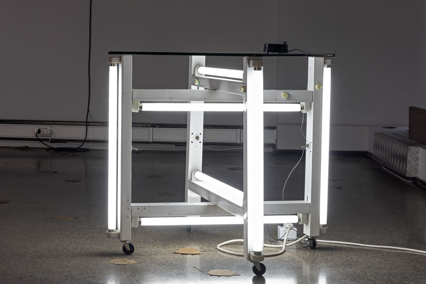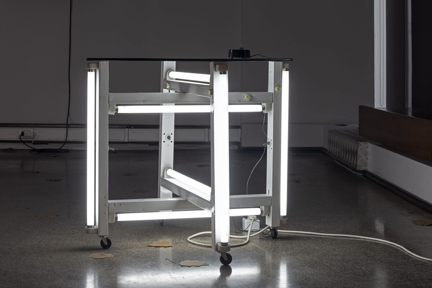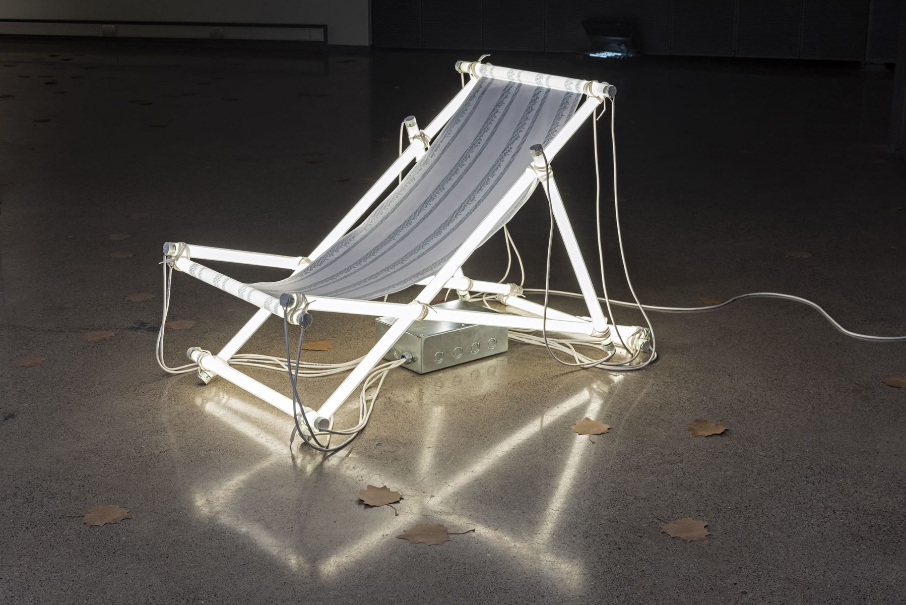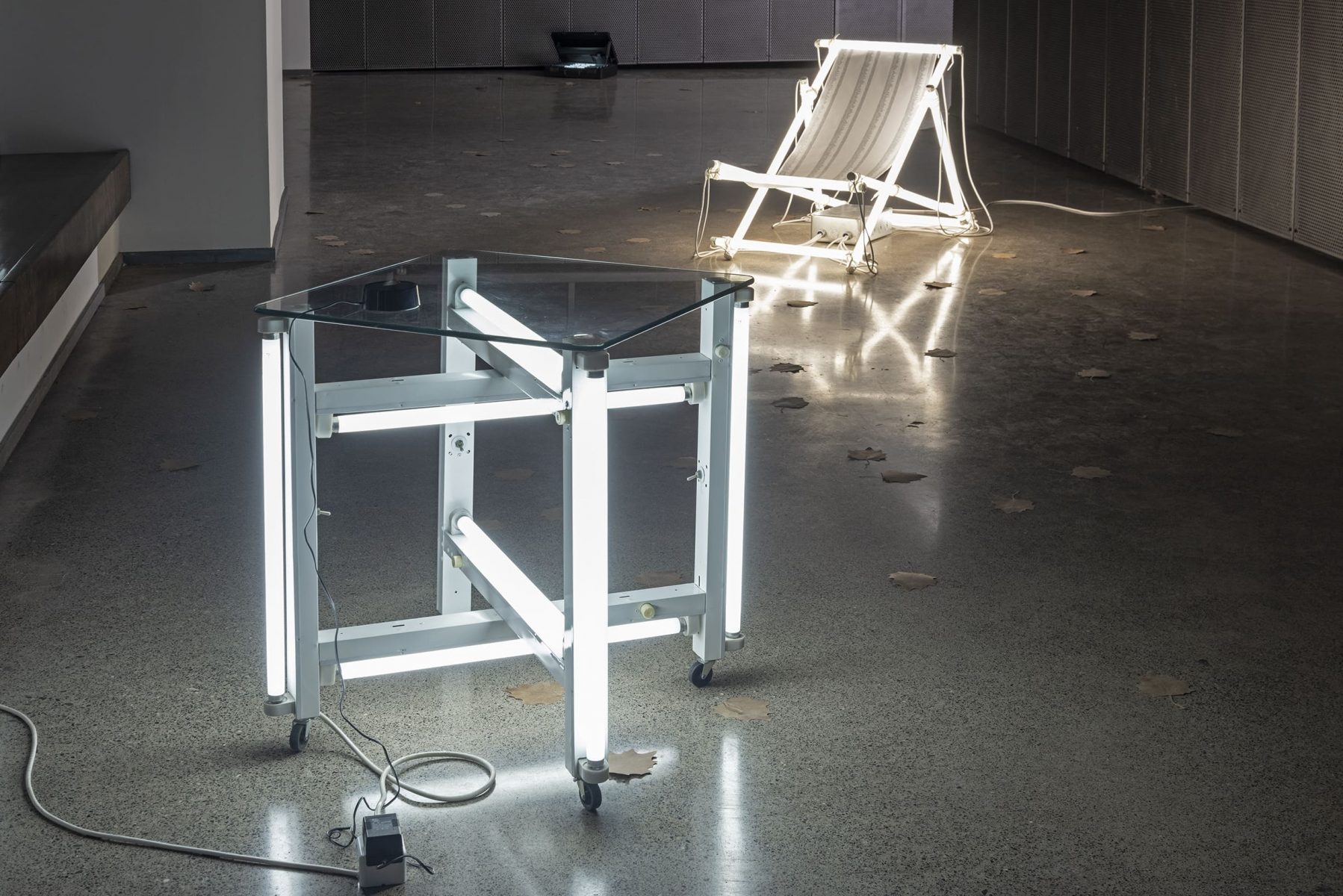 Para Iván Navarro la luz es una forma en el espacio, una nota que se hace tocar y una manera estratégica de capturar nuestra atención. Como polillas ensayando su muerte nos acercamos a un tubo flourescente prendido siempre –según un poeta– para que los borrachos se mantuvieran despiertos en un boliche, en una galería de arte, en una pieza oscura, ante un problema. Para que, sin poder ver, estando encandilados tuvieramos que escuchar… Please listening: el parpadeo del partidor, el zumbido del neón, la transmisión de corriente, la circulación de energía y el movimiento de un trompo metálico en un giro interminable. Y, detrás o más atrás de estos sonidos iniciales, retumban – más bajos pero más profundos– otros ruidos que son otras voces. Entre todas ellas, logramos distinguir emergiendo de estas obras: las preguntas formuladas frente a un espejo antes del interrogatorio; el clamor de un pueblo antes de ser callado; los gritos de un cuerpo sobre una silla eléctrica antes de la agonía final y las últimas palabras dichas en voz alta –sin saber que eran las últimas– antes de morir asesinado. En esta sucesión de sonidos, se escuchan también disparos, explosiones y bombardeos pero, más lejos aún, se escucha todavía la melodía de una canción que no ha dejado de sonar.