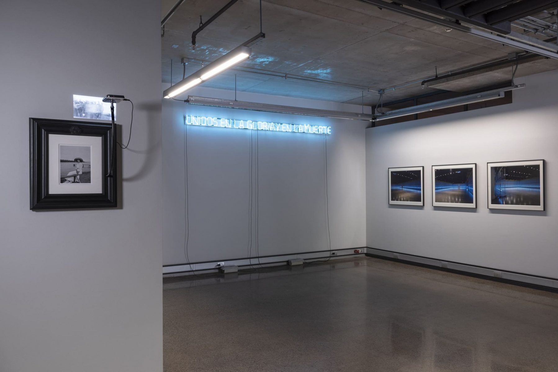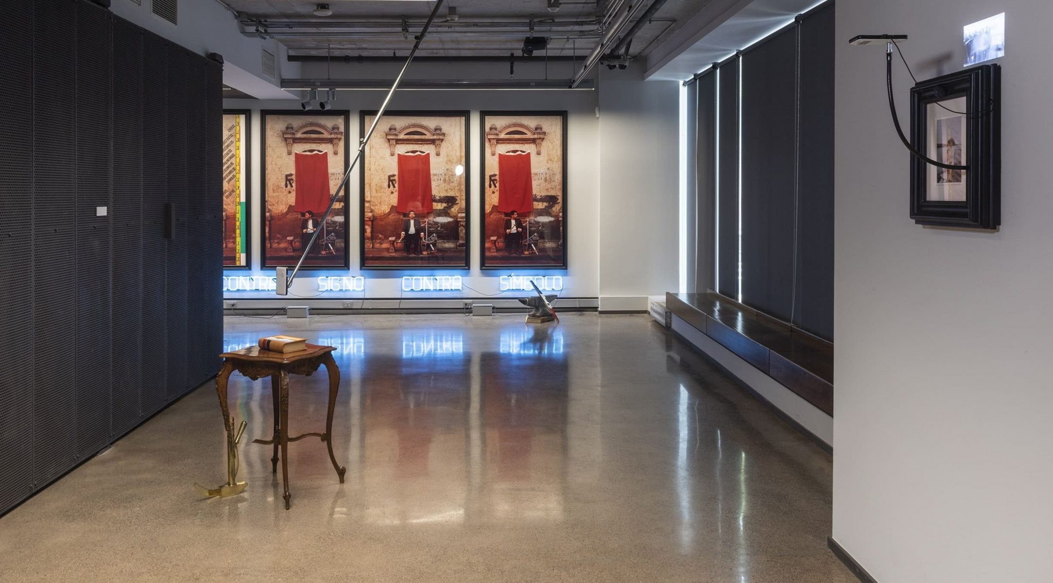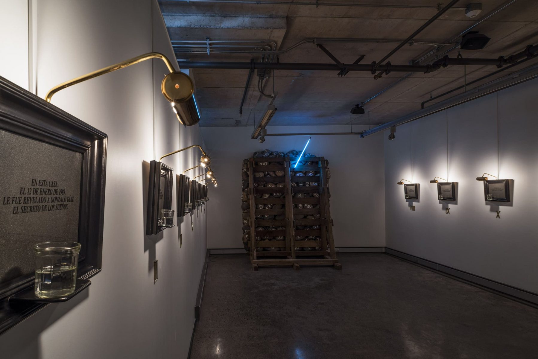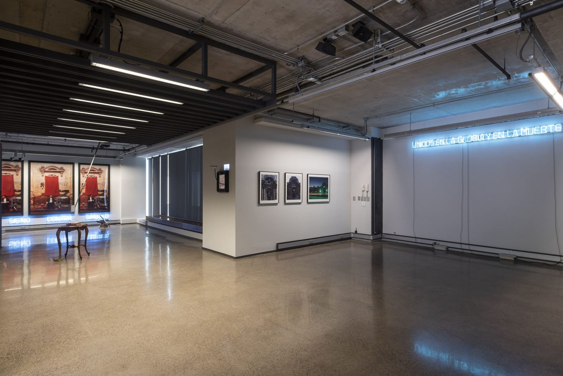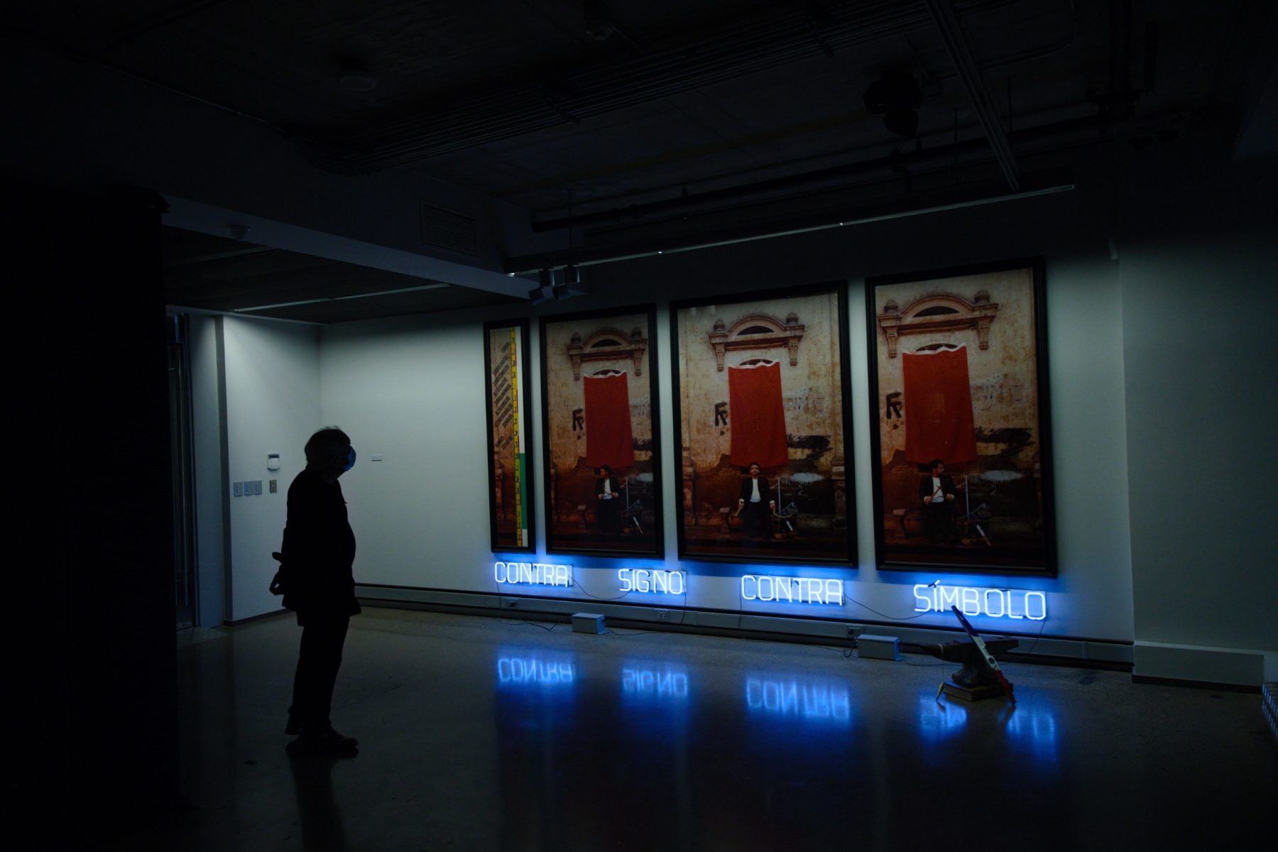 Las cinco obras que presentamos en esta muestra invitan a pensar en todo aquello que de nuestra historia sigue parpadeando, como las frágiles luces de neón que no han dejado de aparecer nunca en las obras de Gonzalo Díaz.