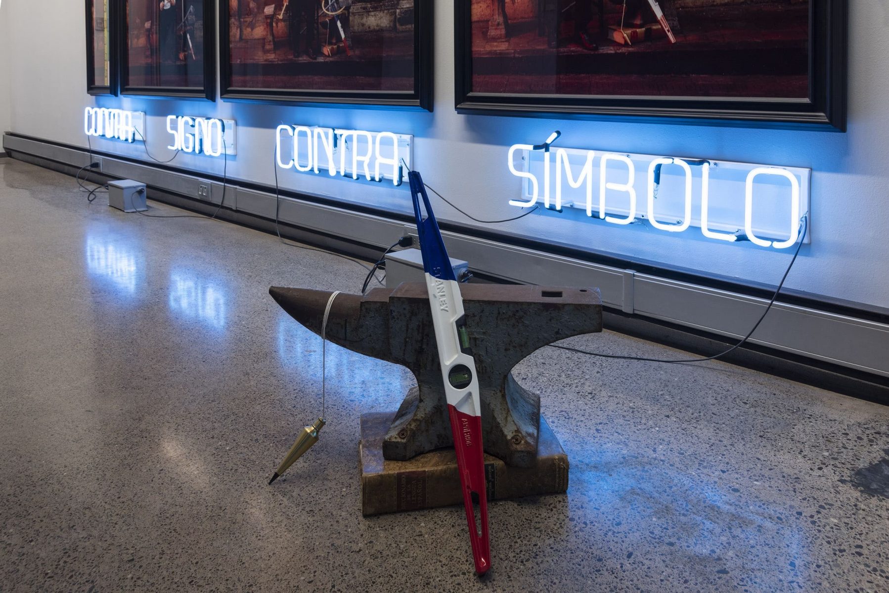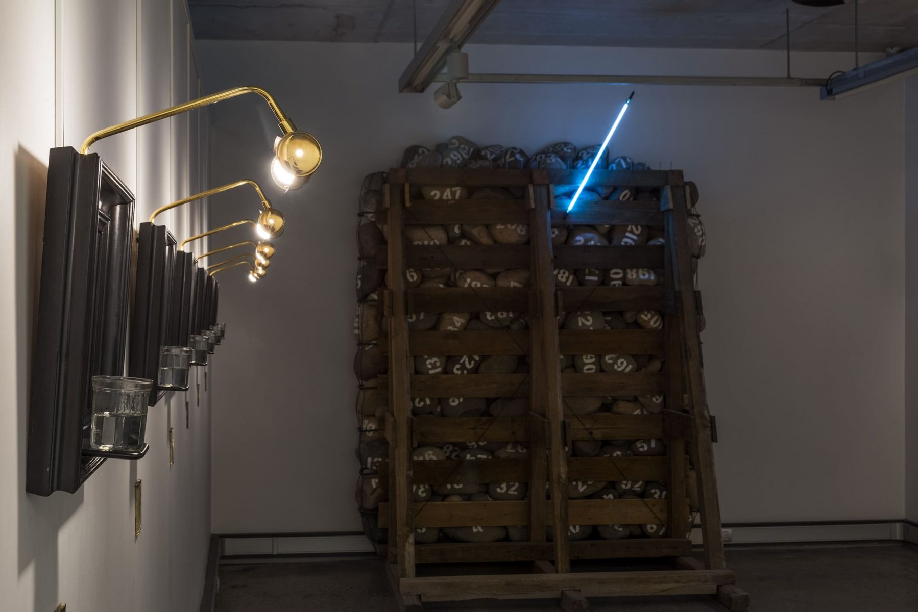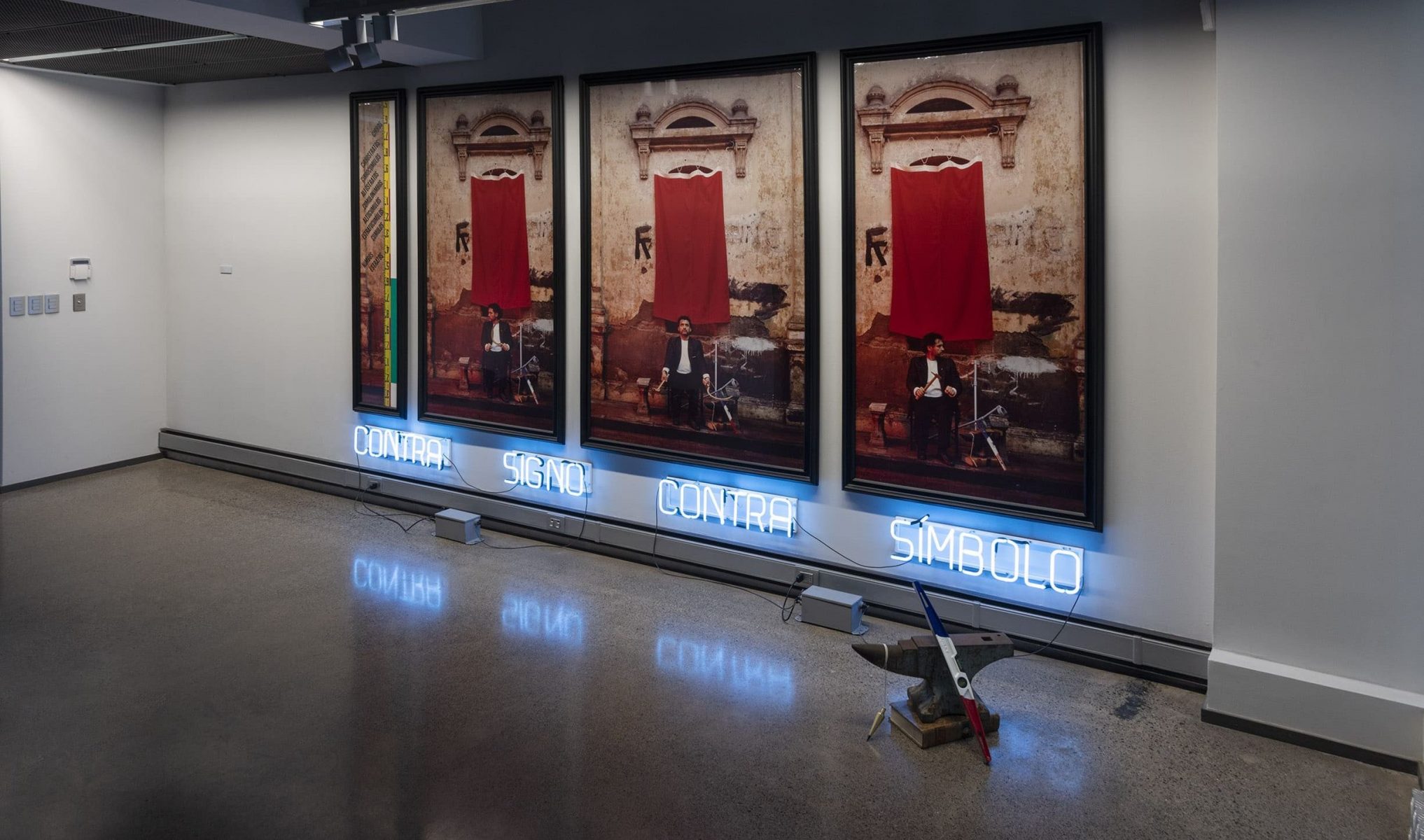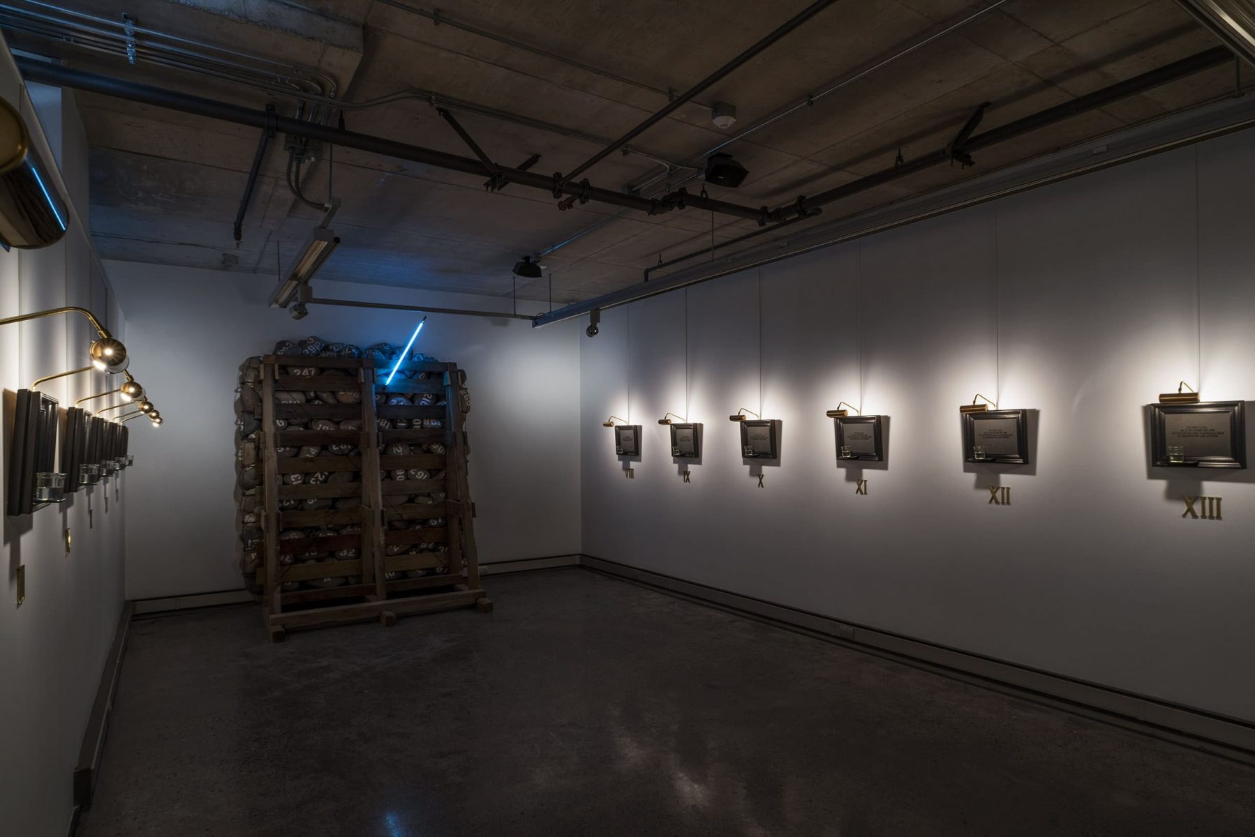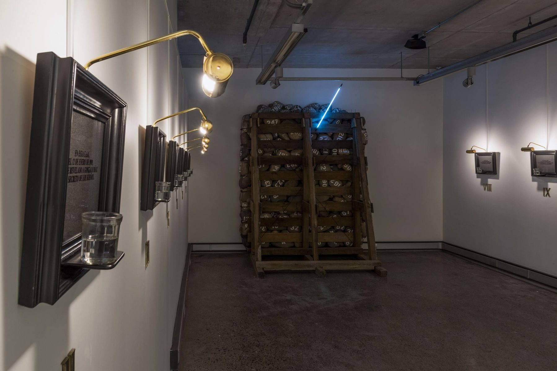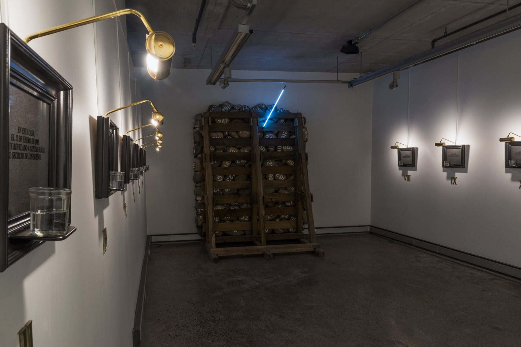 Las cinco obras que presentamos en esta muestra invitan a pensar en todo aquello que de nuestra historia sigue parpadeando, como las frágiles luces de neón que no han dejado de aparecer nunca en las obras de Gonzalo Díaz.