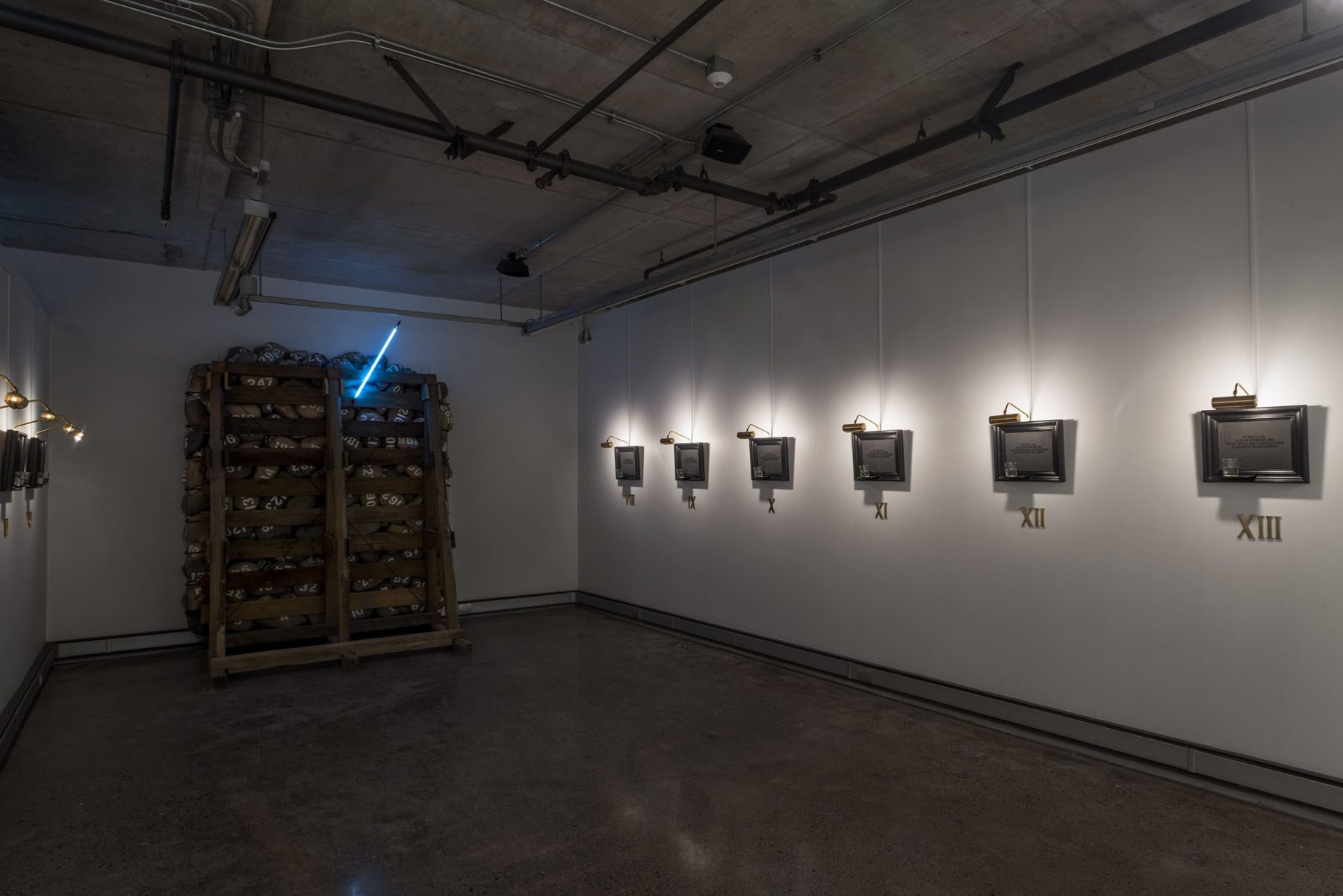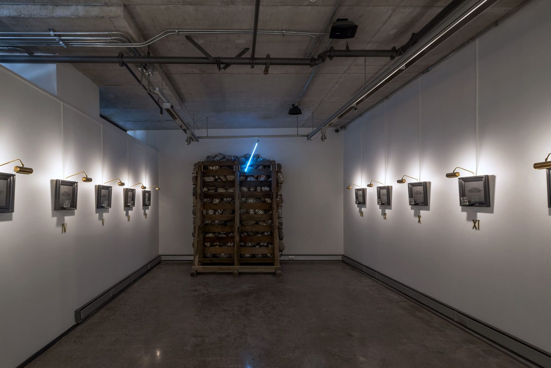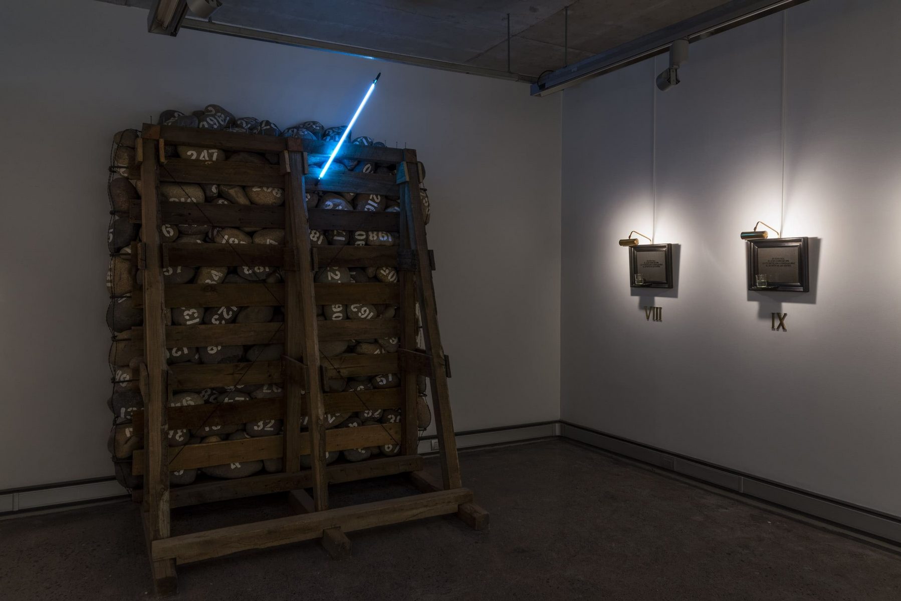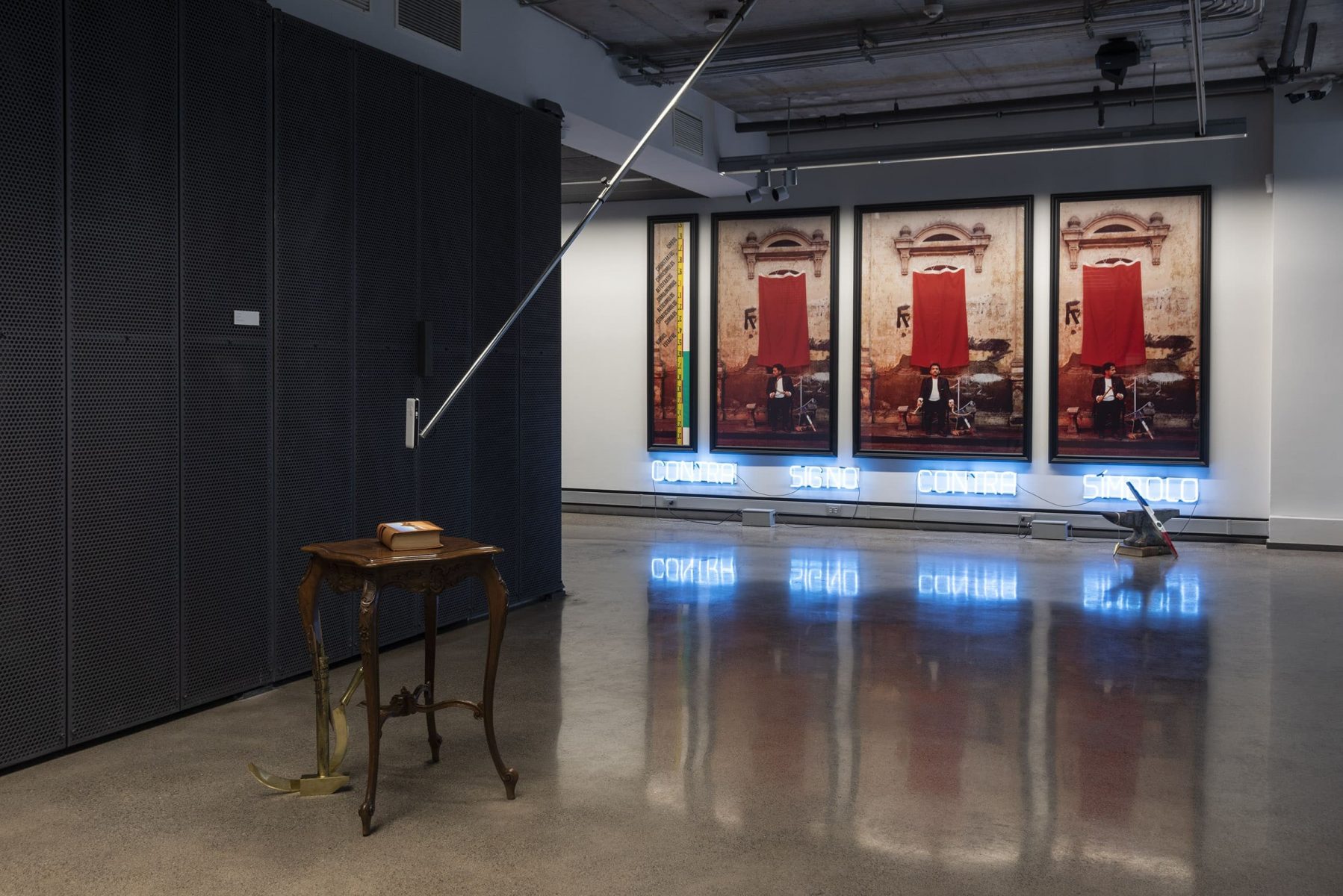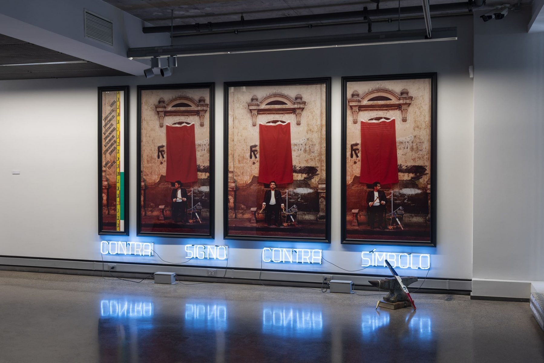 Las cinco obras que presentamos en esta muestra invitan a pensar en todo aquello que de nuestra historia sigue parpadeando, como las frágiles luces de neón que no han dejado de aparecer nunca en las obras de Gonzalo Díaz.