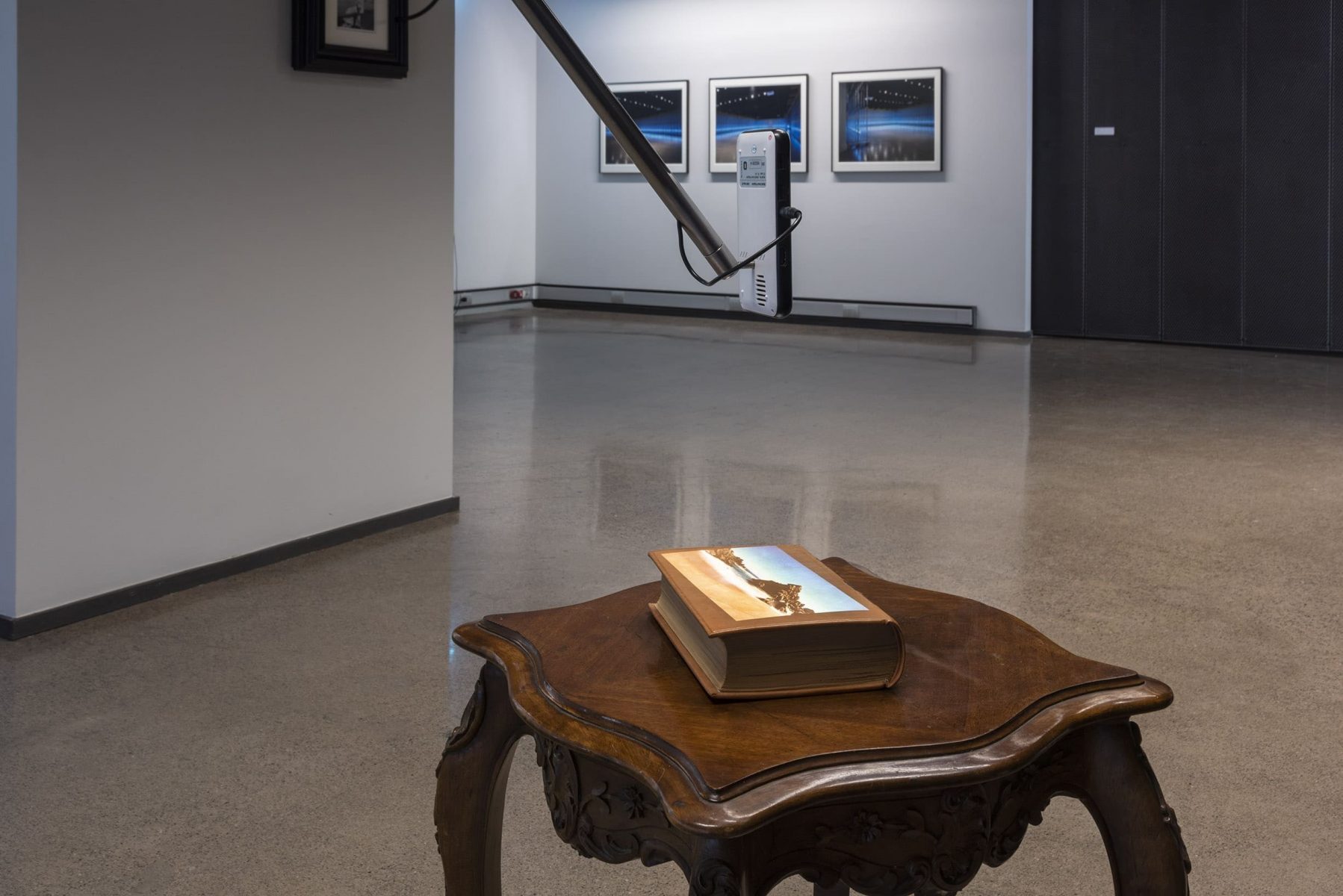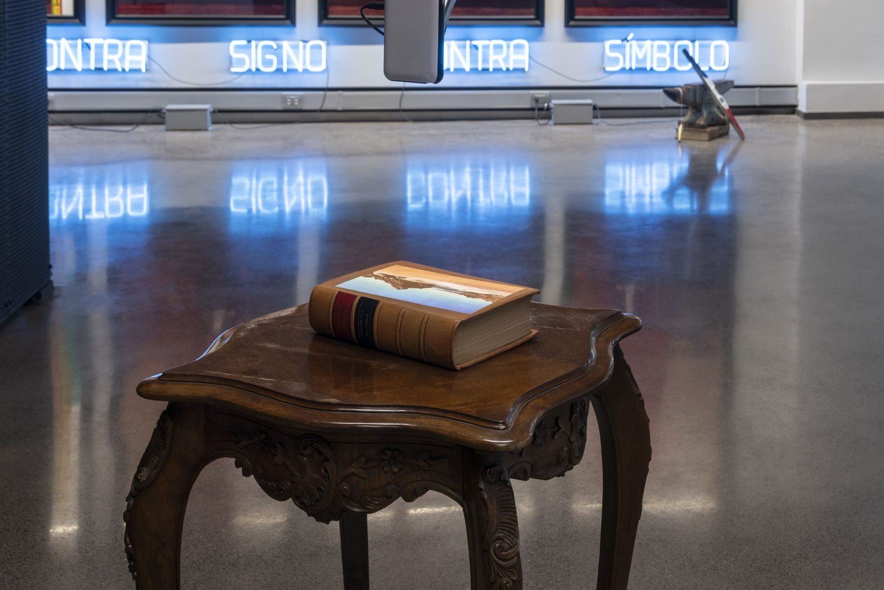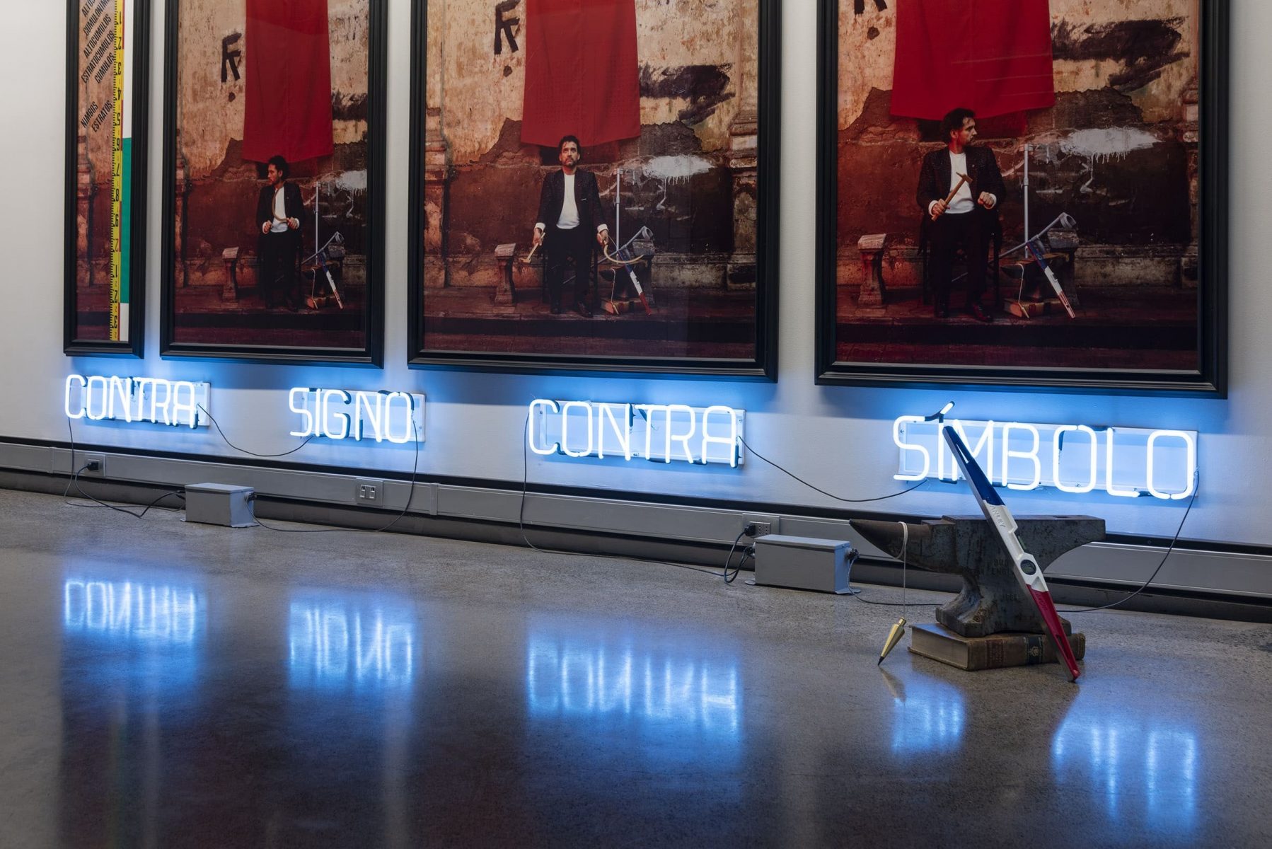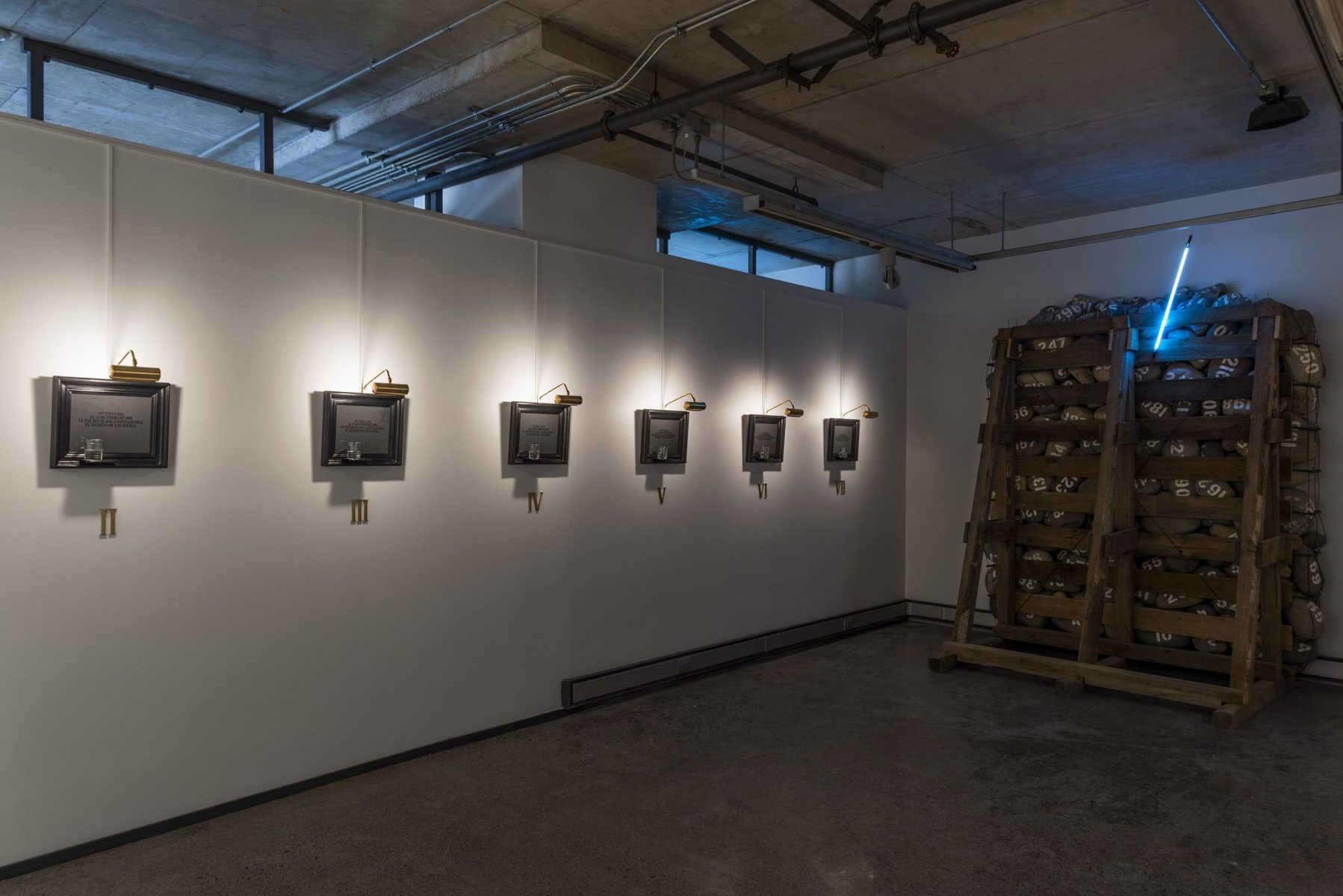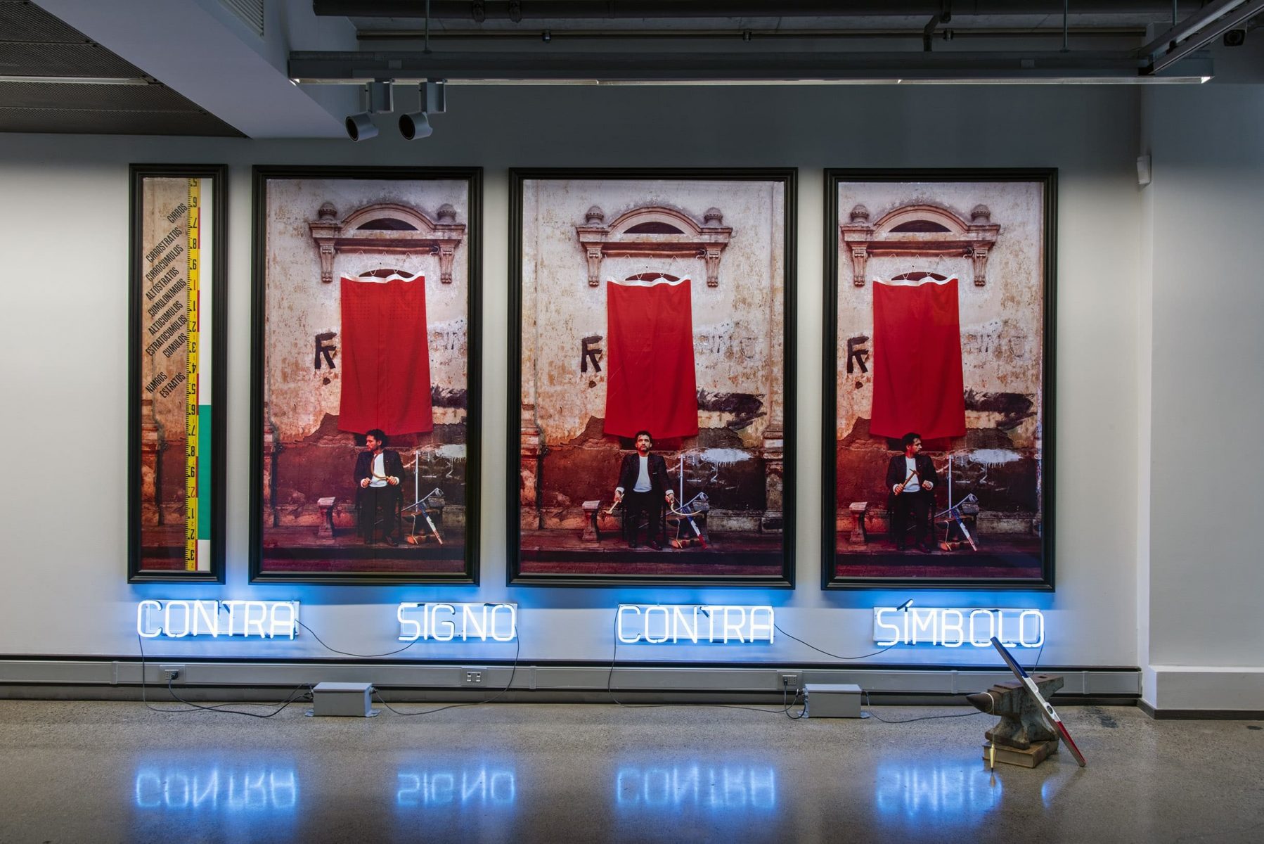 Las cinco obras que presentamos en esta muestra invitan a pensar en todo aquello que de nuestra historia sigue parpadeando, como las frágiles luces de neón que no han dejado de aparecer nunca en las obras de Gonzalo Díaz.