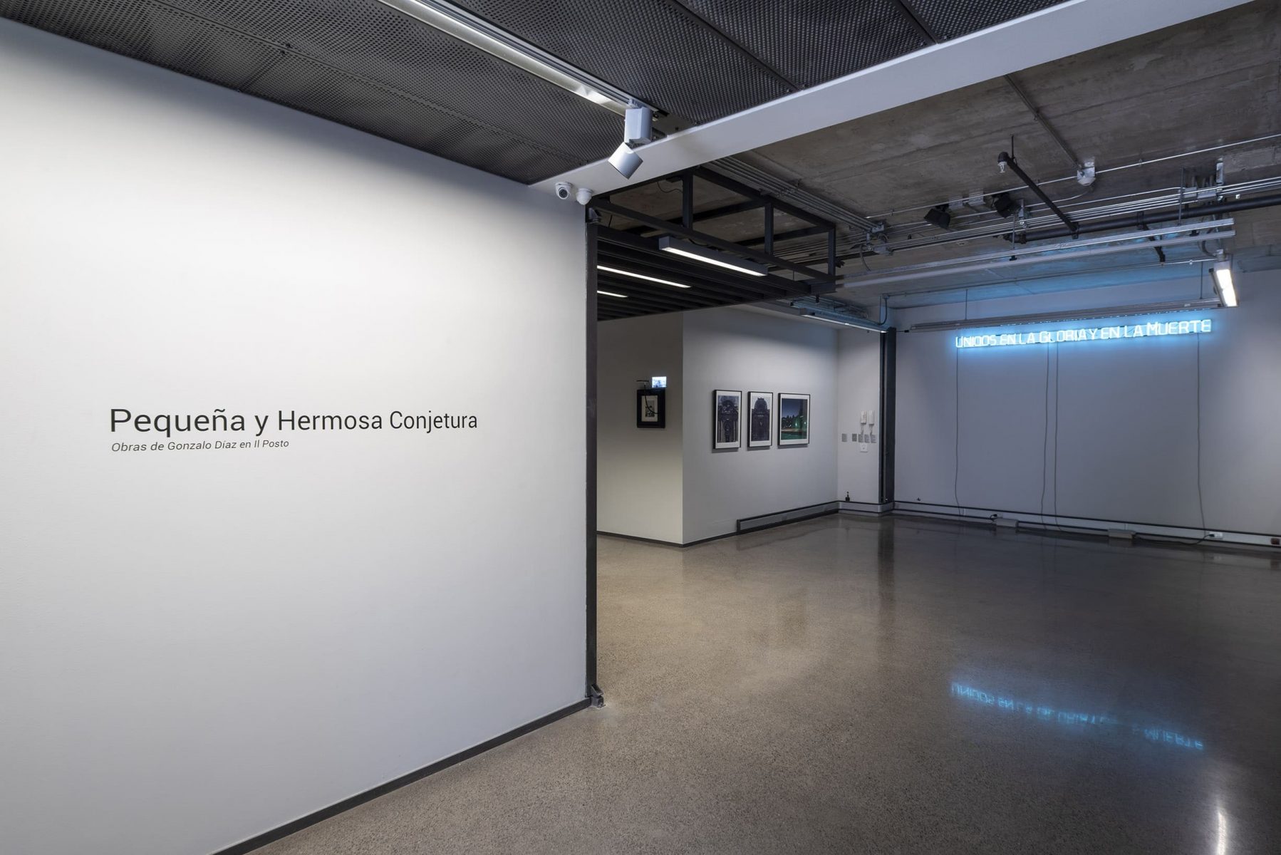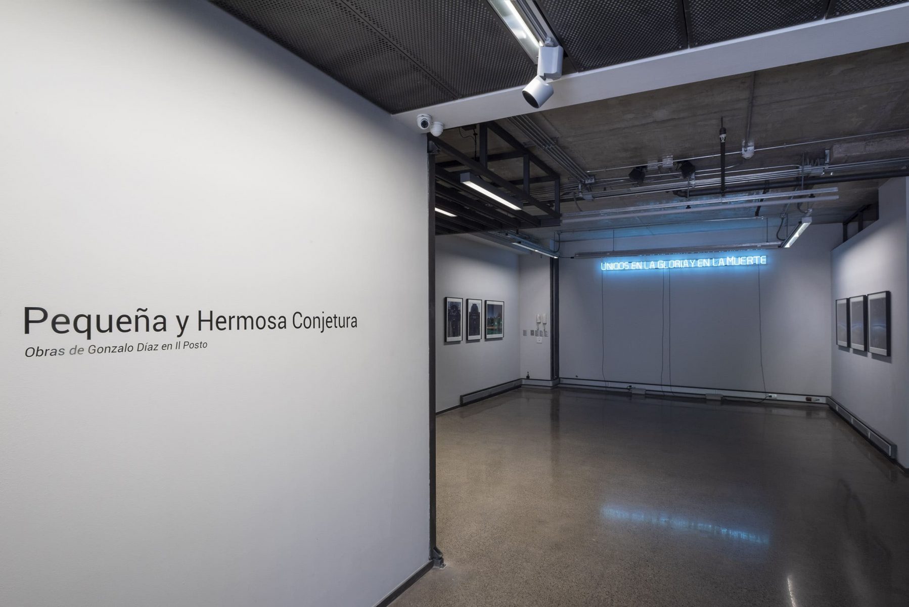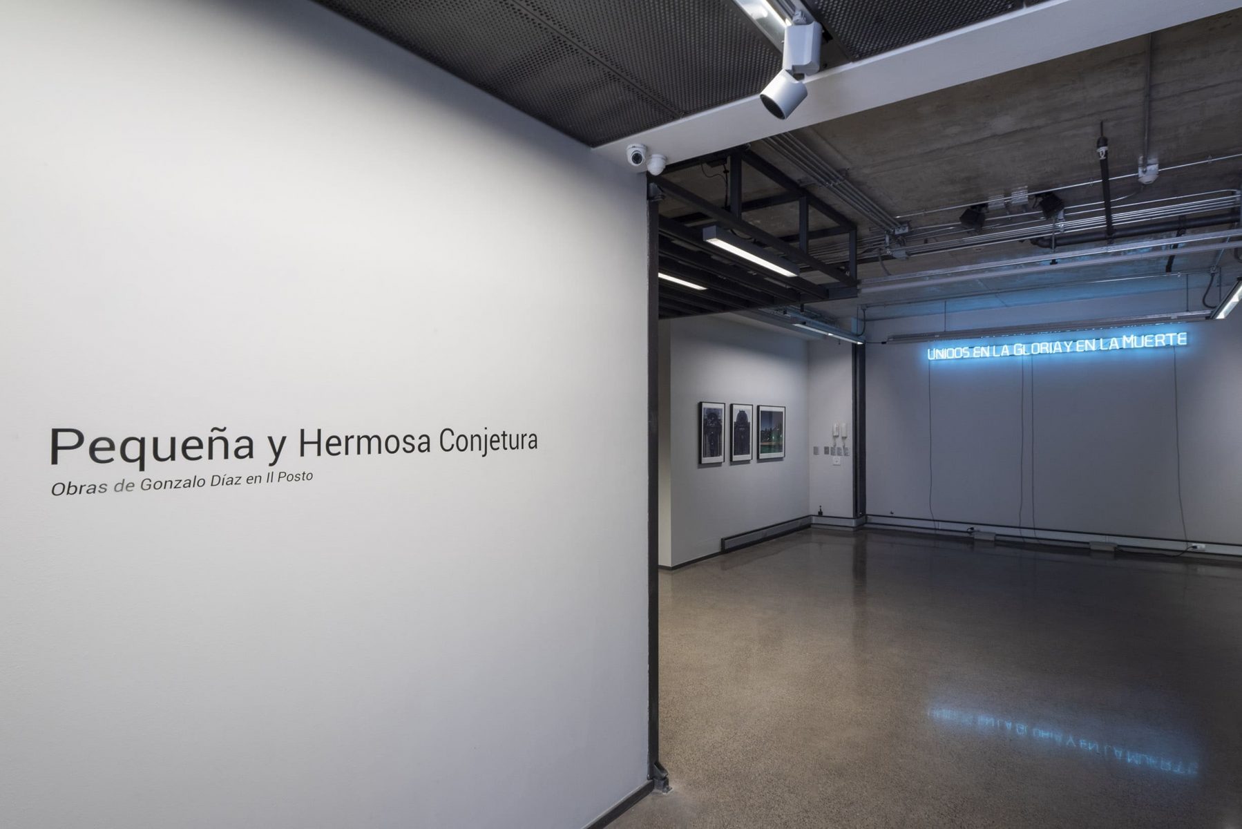 La muestra Pequeña y hermosa conjetura reúne más de 30 años de trayectoria del artista Gonzalo Díaz, Premio Nacional de Artes Visuales 2003. A Fotoperformance ―obra exhibida por primera vez en Chile desde su primera aparición en Cirugía Plástica (Berlín, 1989)― y Unidos en la Gloria y en la Muerte (1997), se suman dos trabajos más recientes del artista: La novia muerta y La República, ambos del 2019.