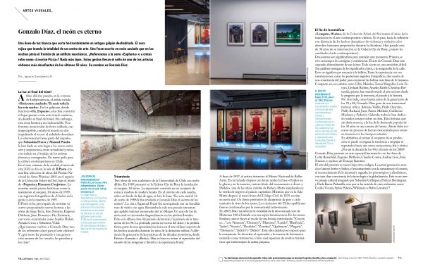 Las cinco obras que presentamos en esta muestra invitan a pensar en todo aquello que de nuestra historia sigue parpadeando, como las frágiles luces de neón que no han dejado de aparecer nunca en las obras de Gonzalo Díaz.