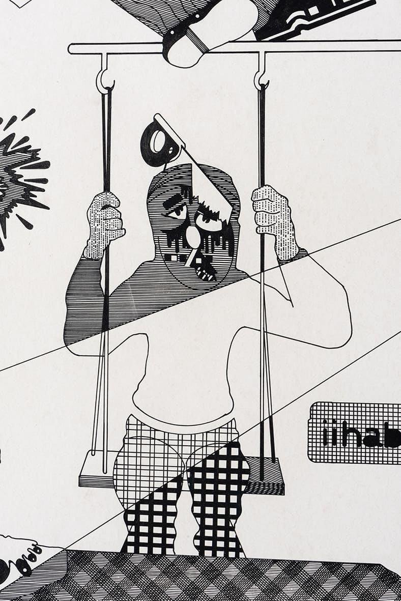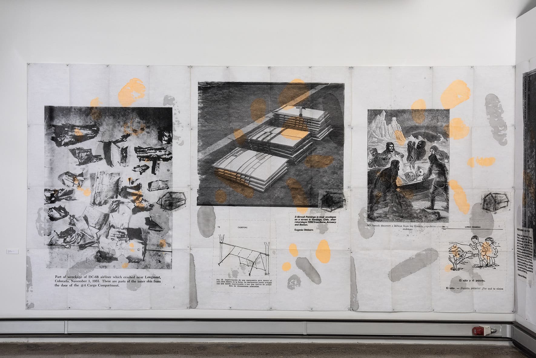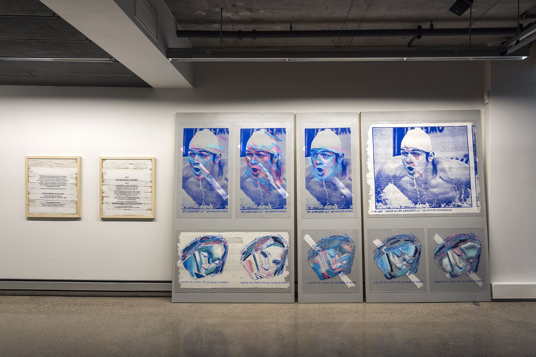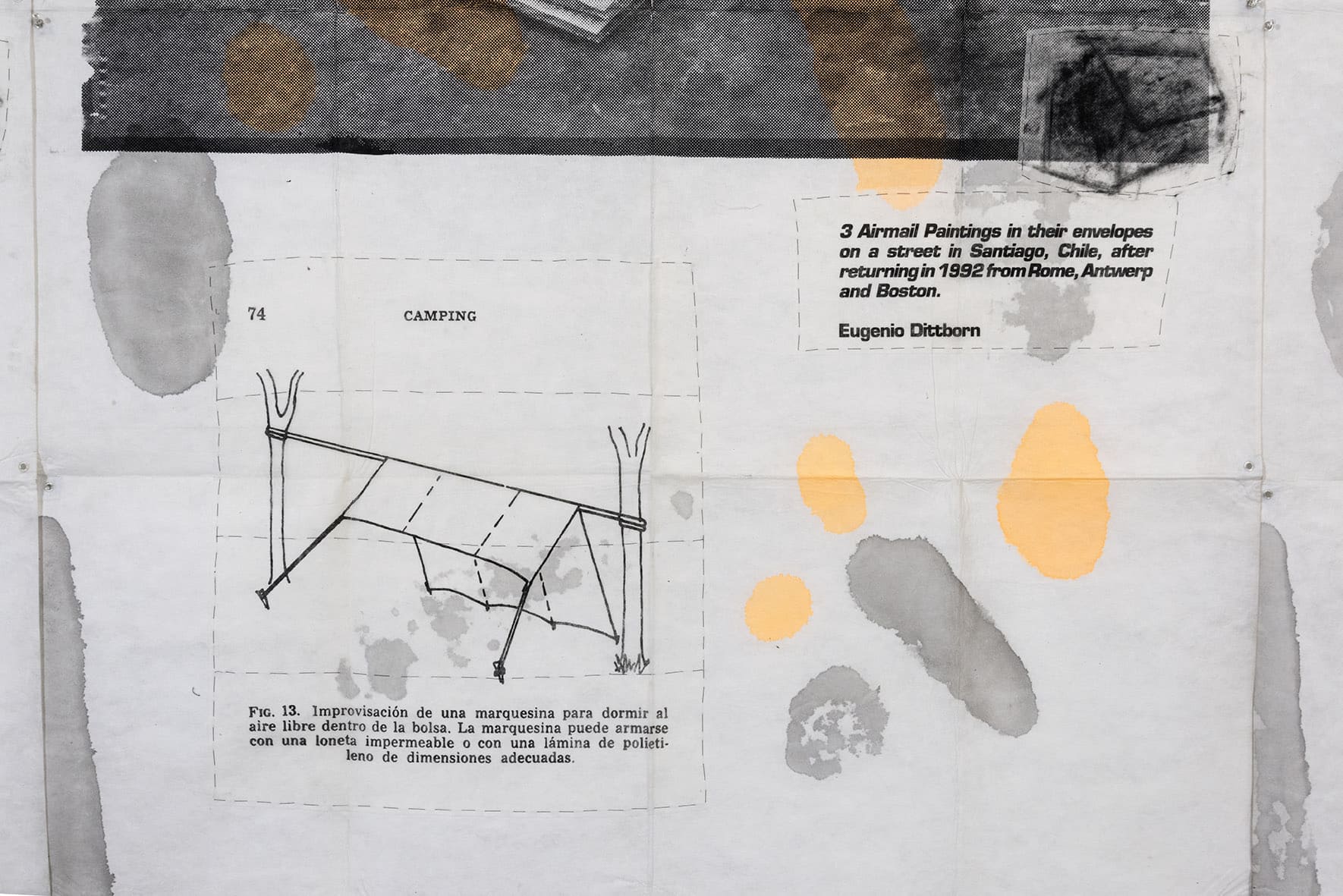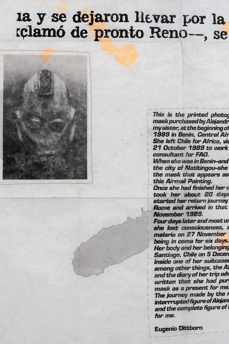 «Trabajos, 1969-2017» es una muestra singular de la trayectoria recorrida por Eugenio Dittborn en los últimos cincuenta años. Las obras que conviven aquí – desde las pinturas aeropostales hasta los últimos dibujos realizados por Dittborn antes de «dejar de trabajar con la mano»- registran con eficacia la actitud de un artista que desconfía de las últimas palabras y todos los estados de cosas fijos (incluyendo el de su propio trabajo). Poco a poco y a ritmo de pequeños hallazgos, esta constelación de imágenes y prácticas visuales hace emerger lo que Ana María Risco denomina como una auténtica poética pictórica. Una poética donde las cosas que parecen absolutamente indeterminadas son, en realidad, el resultado de un cálculo, del mismo modo que las cosas que parecen absolutamente calculadas nos llevan incesantemente a lo indeterminado.