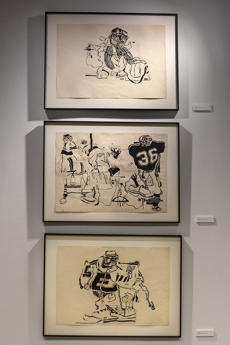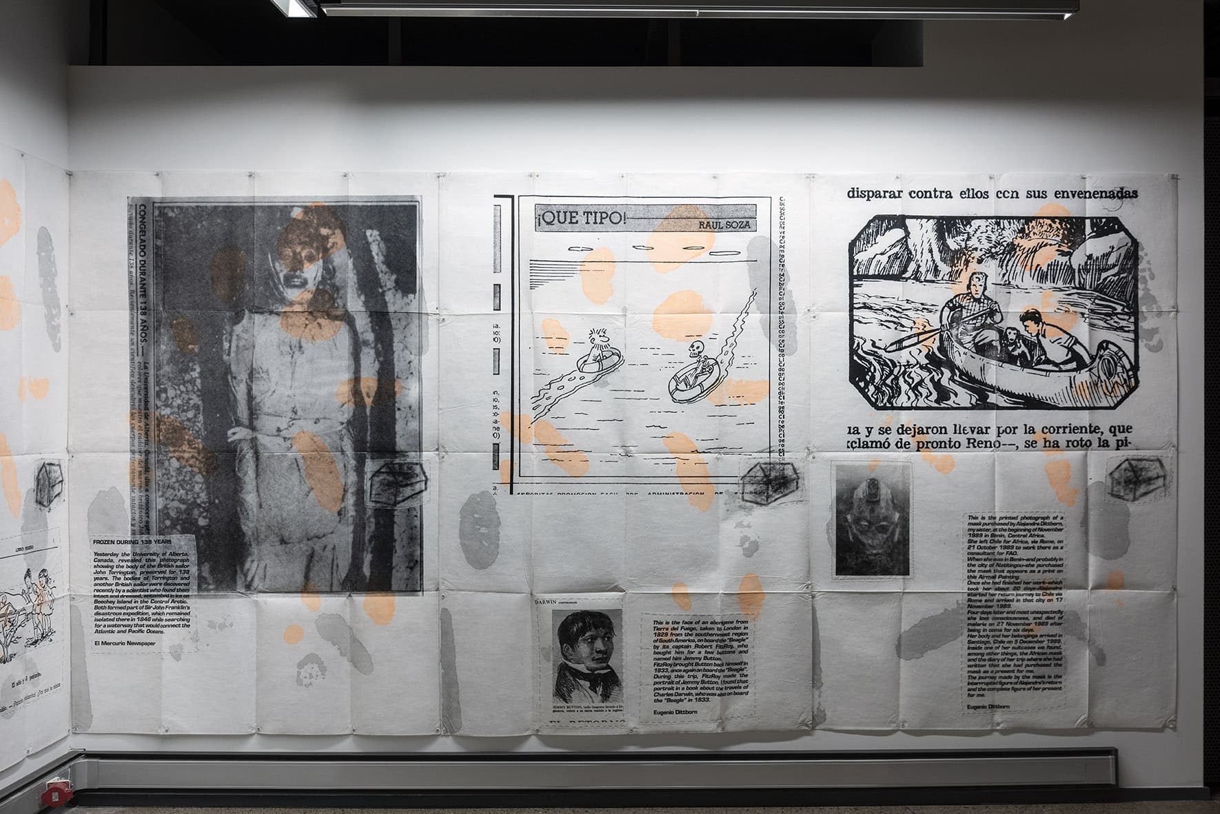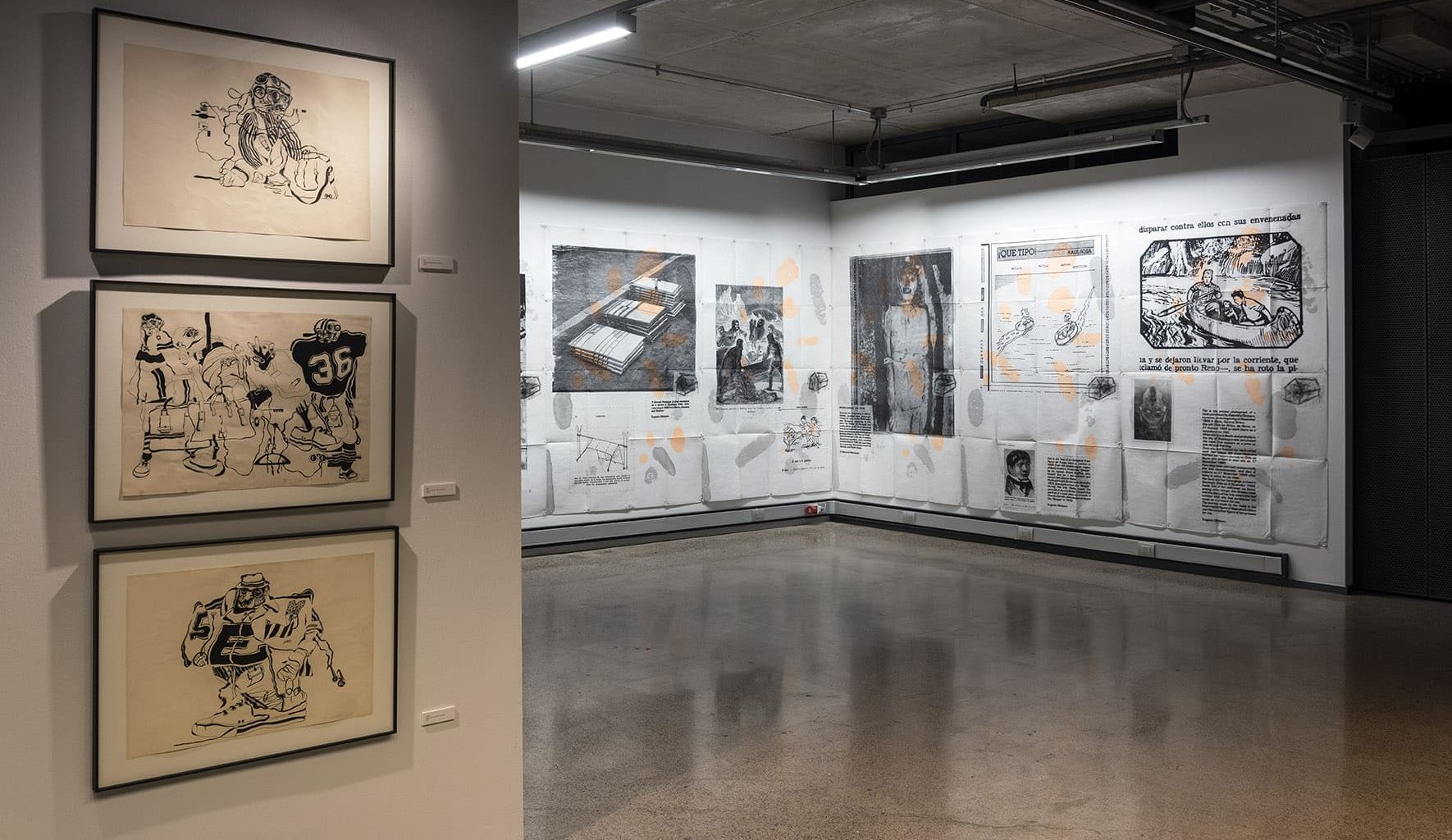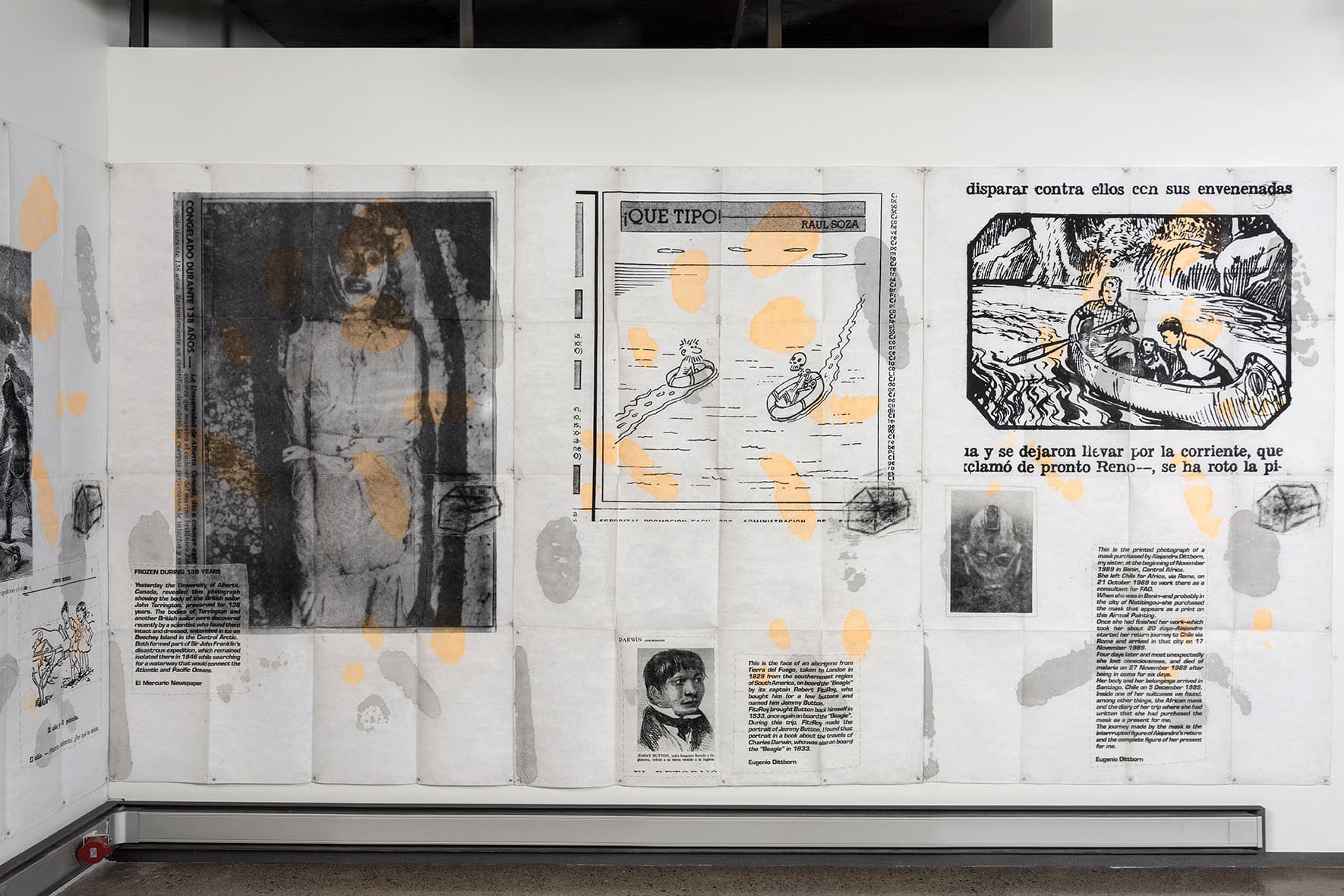 «Trabajos, 1969-2017» es una muestra singular de la trayectoria recorrida por Eugenio Dittborn en los últimos cincuenta años. Las obras que conviven aquí – desde las pinturas aeropostales hasta los últimos dibujos realizados por Dittborn antes de «dejar de trabajar con la mano»- registran con eficacia la actitud de un artista que desconfía de las últimas palabras y todos los estados de cosas fijos (incluyendo el de su propio trabajo). Poco a poco y a ritmo de pequeños hallazgos, esta constelación de imágenes y prácticas visuales hace emerger lo que Ana María Risco denomina como una auténtica poética pictórica. Una poética donde las cosas que parecen absolutamente indeterminadas son, en realidad, el resultado de un cálculo, del mismo modo que las cosas que parecen absolutamente calculadas nos llevan incesantemente a lo indeterminado.