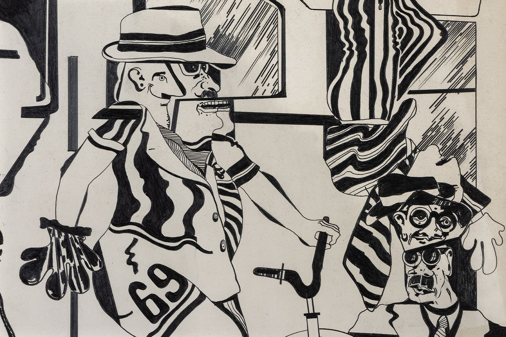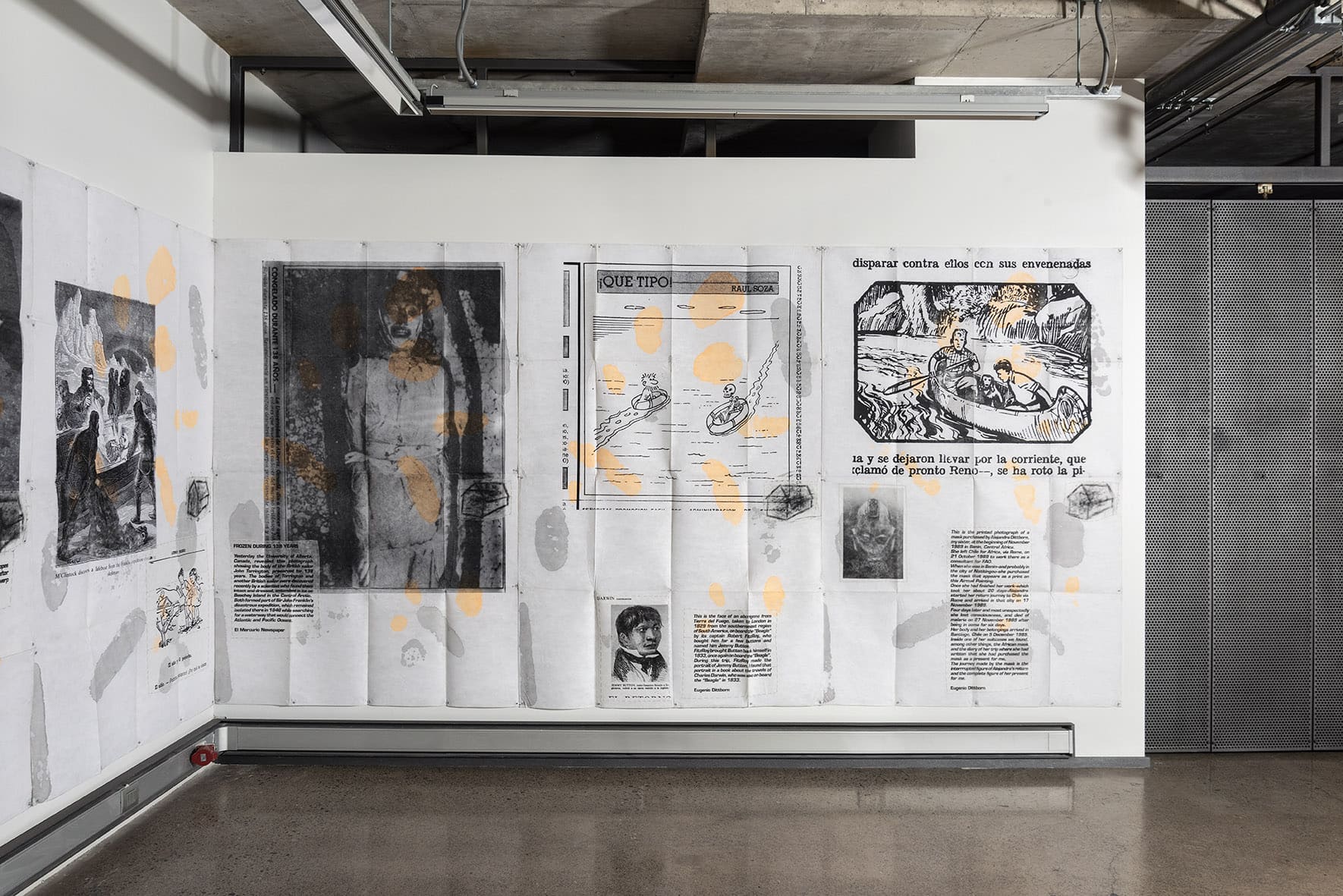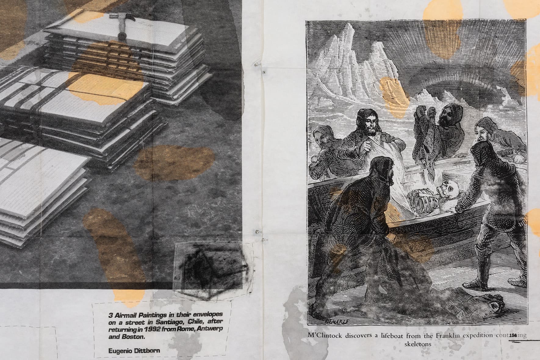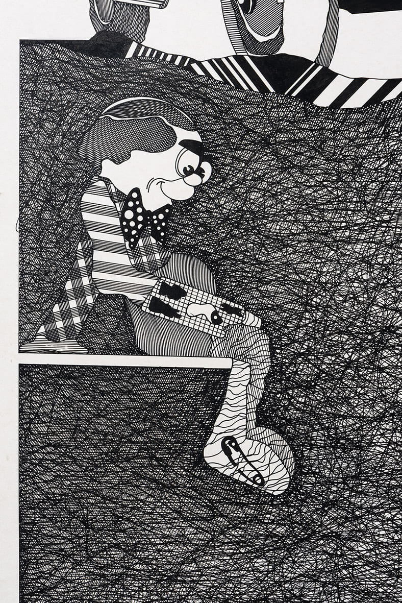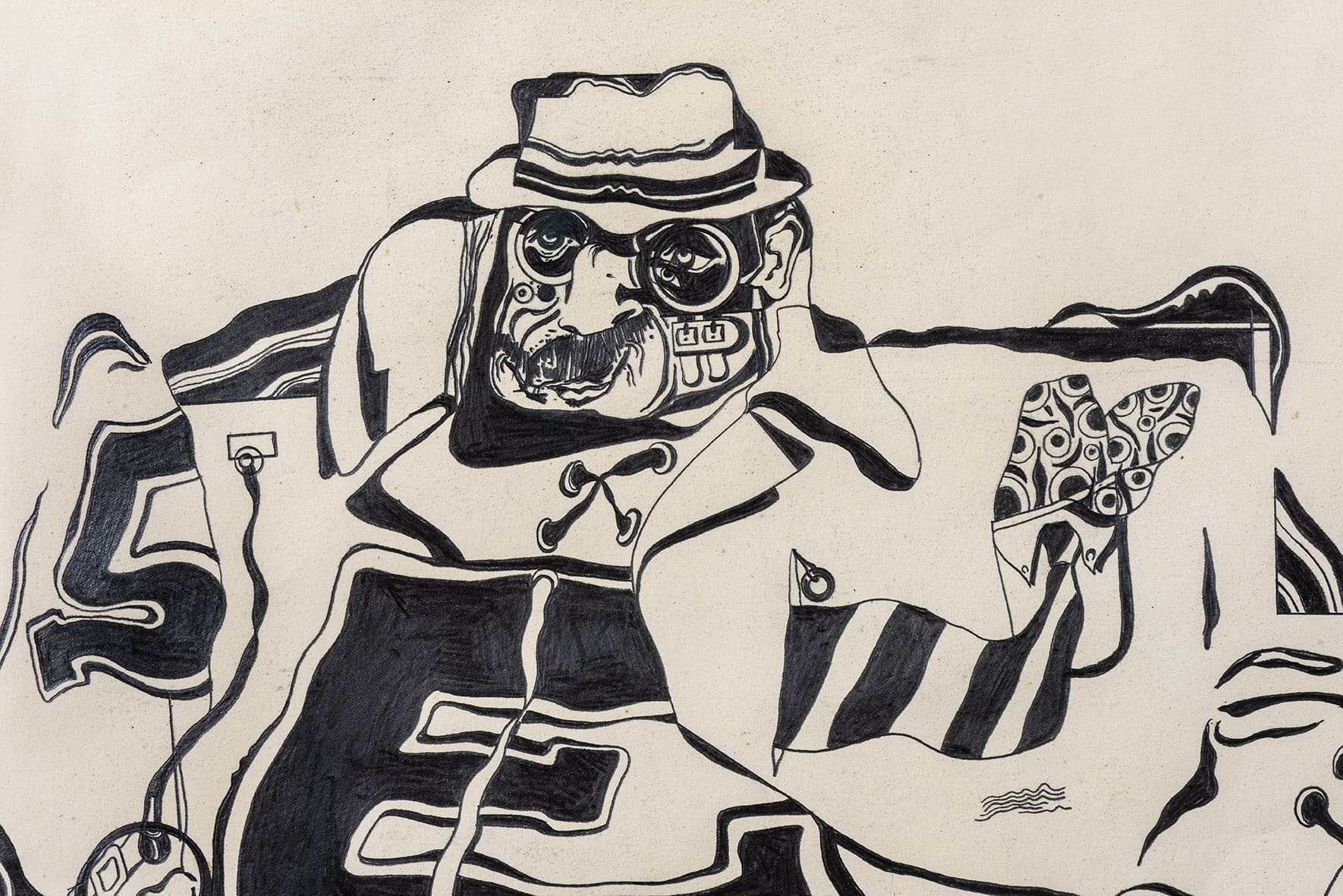 «Trabajos, 1969-2017» es una muestra singular de la trayectoria recorrida por Eugenio Dittborn en los últimos cincuenta años. Las obras que conviven aquí – desde las pinturas aeropostales hasta los últimos dibujos realizados por Dittborn antes de «dejar de trabajar con la mano»- registran con eficacia la actitud de un artista que desconfía de las últimas palabras y todos los estados de cosas fijos (incluyendo el de su propio trabajo). Poco a poco y a ritmo de pequeños hallazgos, esta constelación de imágenes y prácticas visuales hace emerger lo que Ana María Risco denomina como una auténtica poética pictórica. Una poética donde las cosas que parecen absolutamente indeterminadas son, en realidad, el resultado de un cálculo, del mismo modo que las cosas que parecen absolutamente calculadas nos llevan incesantemente a lo indeterminado.