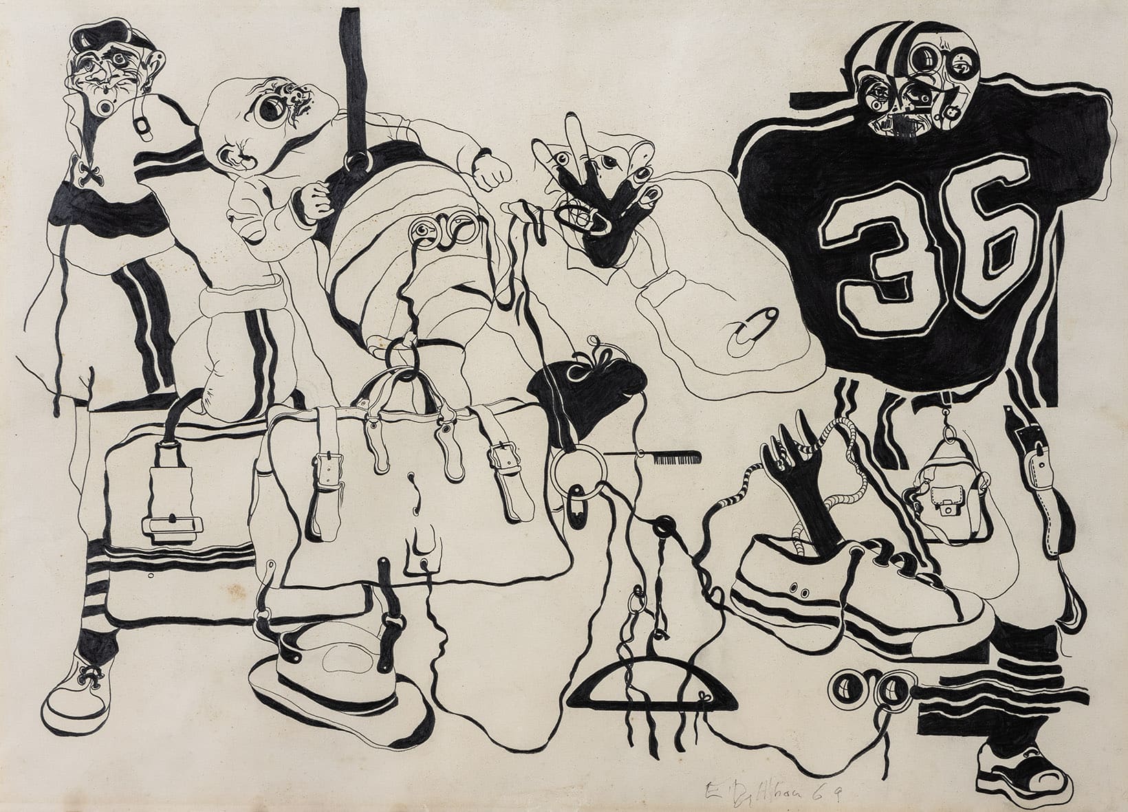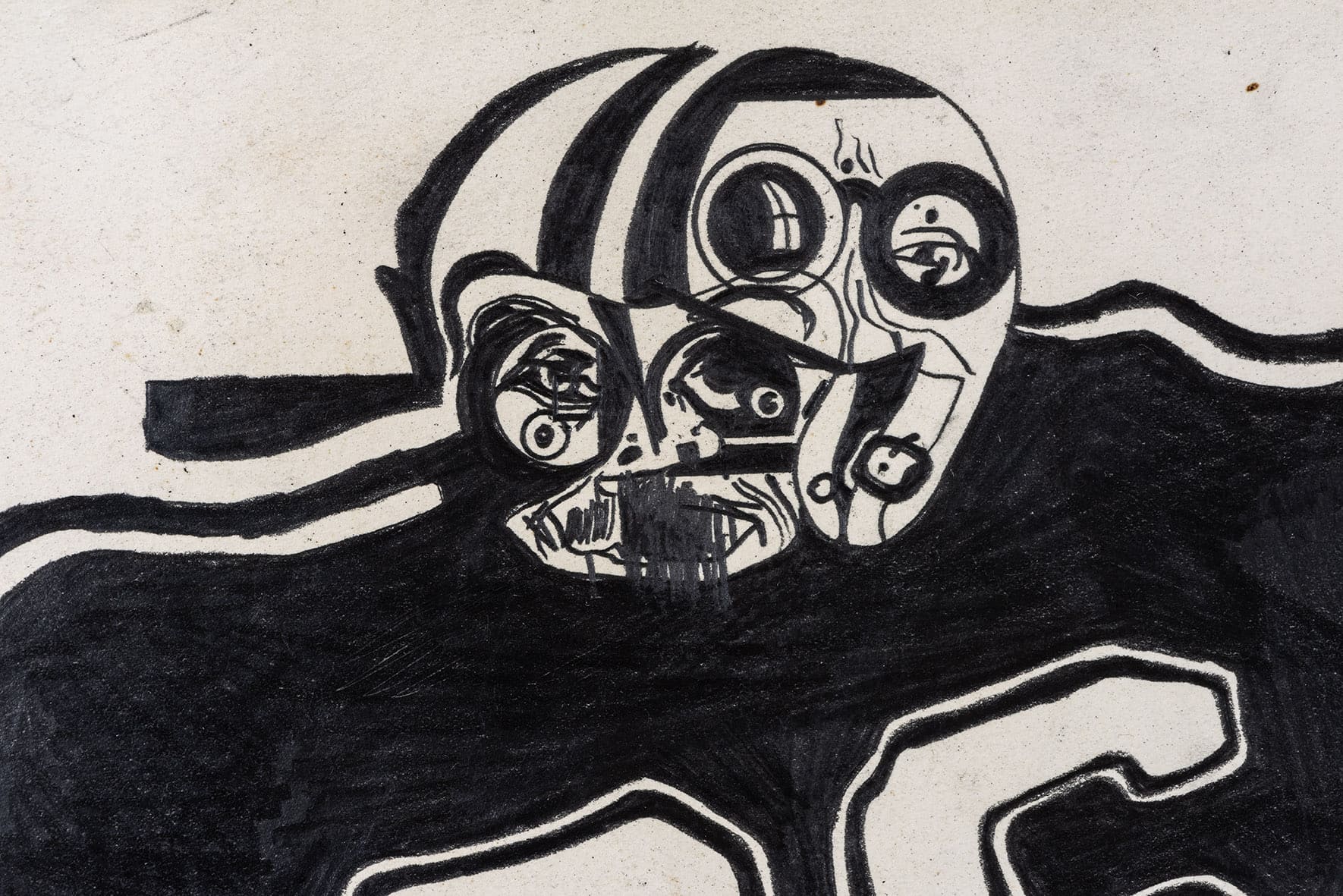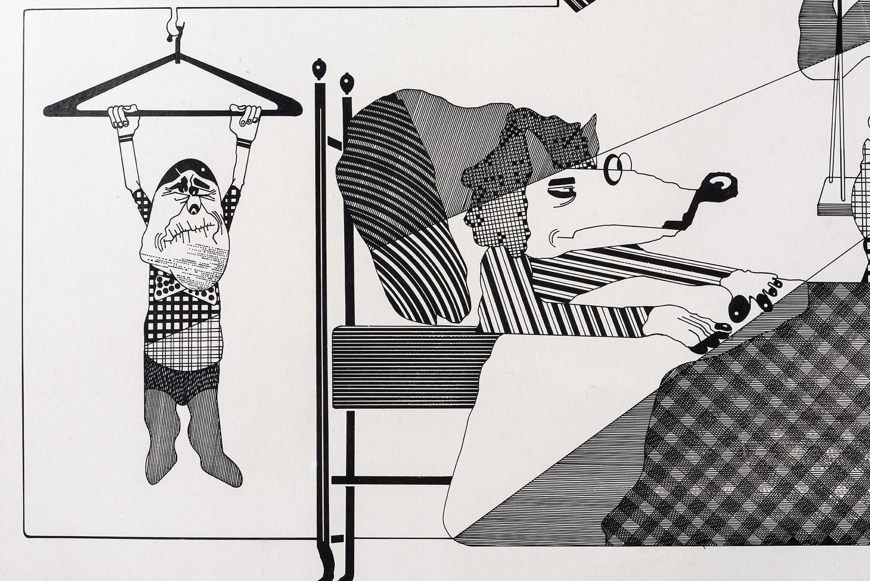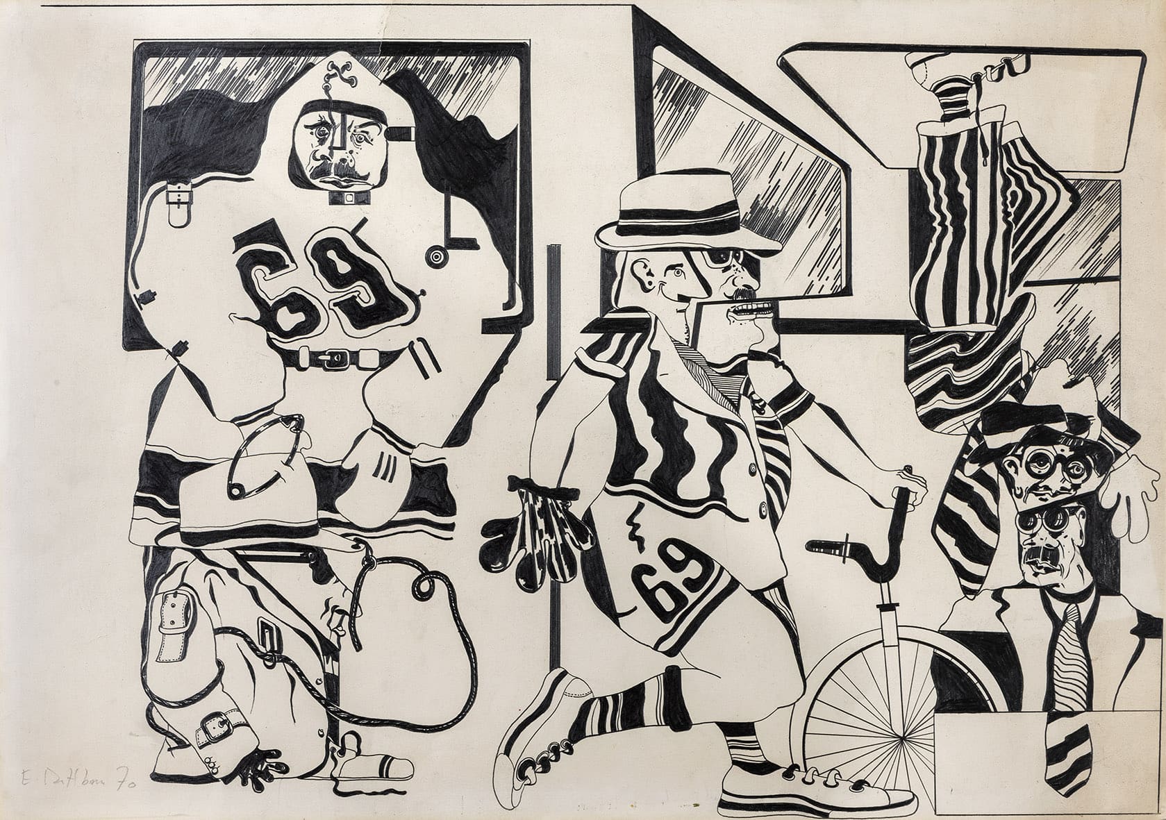 «Trabajos, 1969-2017» es una muestra singular de la trayectoria recorrida por Eugenio Dittborn en los últimos cincuenta años. Las obras que conviven aquí – desde las pinturas aeropostales hasta los últimos dibujos realizados por Dittborn antes de «dejar de trabajar con la mano»- registran con eficacia la actitud de un artista que desconfía de las últimas palabras y todos los estados de cosas fijos (incluyendo el de su propio trabajo). Poco a poco y a ritmo de pequeños hallazgos, esta constelación de imágenes y prácticas visuales hace emerger lo que Ana María Risco denomina como una auténtica poética pictórica. Una poética donde las cosas que parecen absolutamente indeterminadas son, en realidad, el resultado de un cálculo, del mismo modo que las cosas que parecen absolutamente calculadas nos llevan incesantemente a lo indeterminado.