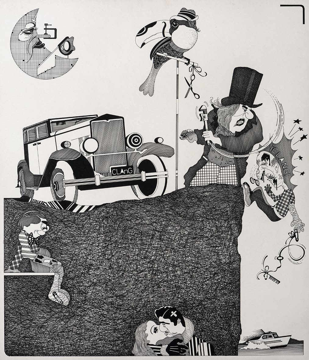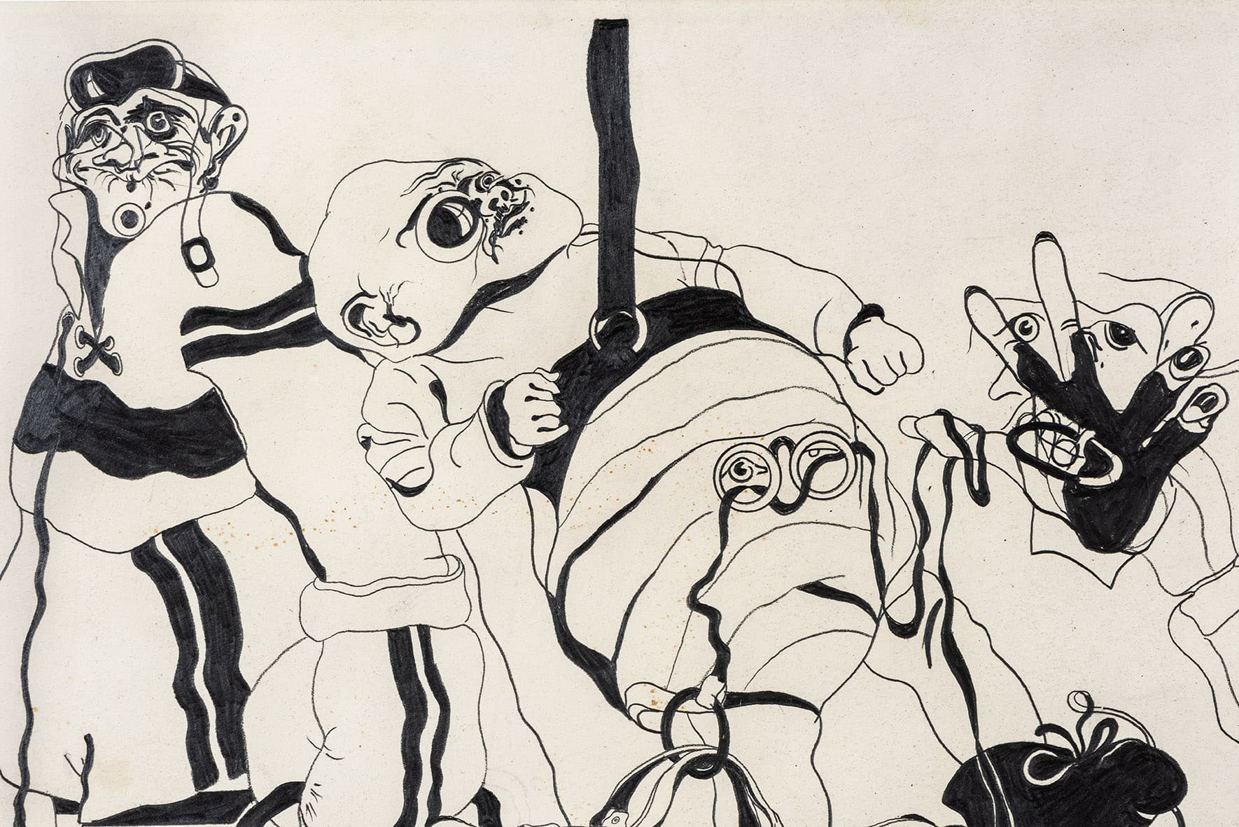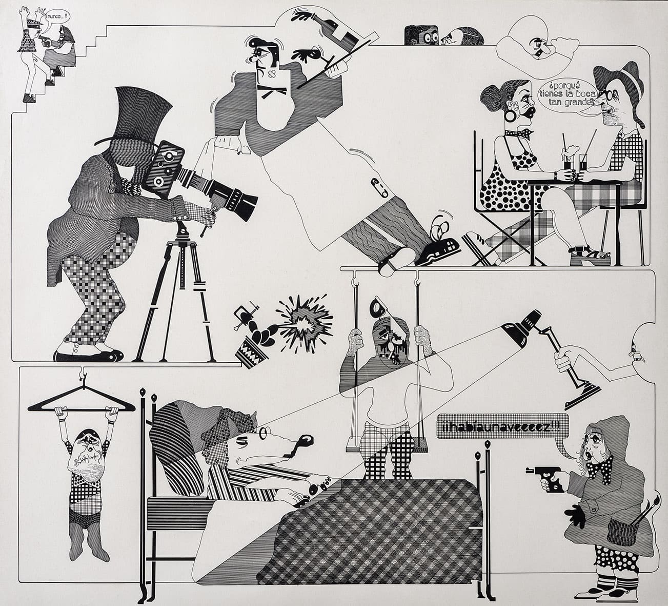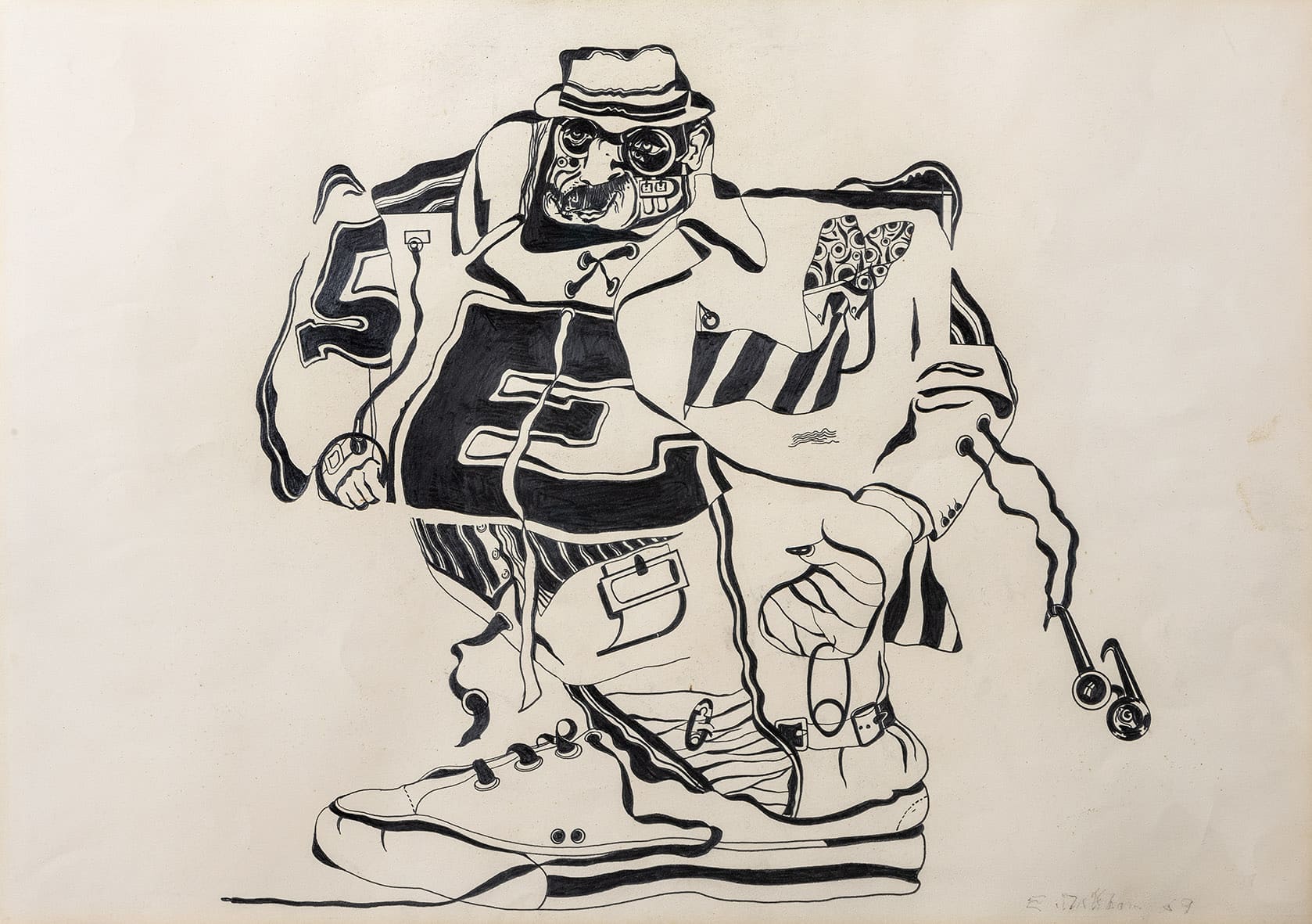 «Trabajos, 1969-2017» es una muestra singular de la trayectoria recorrida por Eugenio Dittborn en los últimos cincuenta años. Las obras que conviven aquí – desde las pinturas aeropostales hasta los últimos dibujos realizados por Dittborn antes de «dejar de trabajar con la mano»- registran con eficacia la actitud de un artista que desconfía de las últimas palabras y todos los estados de cosas fijos (incluyendo el de su propio trabajo). Poco a poco y a ritmo de pequeños hallazgos, esta constelación de imágenes y prácticas visuales hace emerger lo que Ana María Risco denomina como una auténtica poética pictórica. Una poética donde las cosas que parecen absolutamente indeterminadas son, en realidad, el resultado de un cálculo, del mismo modo que las cosas que parecen absolutamente calculadas nos llevan incesantemente a lo indeterminado.