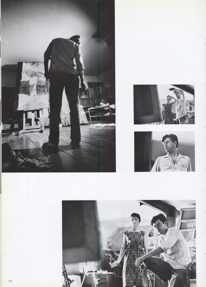 La segunda mitad de la década de los sesenta está marcada por la visita a Santiago, en septiembre de 1964, del entonces director del Museo Guggenheim de Nueva York, Thomas Messer. Recomendado por el escritor Jorge Elliot, Messer visitó a Yrarrázaval en su casa-taller, encuentro a partir del cual el artista fue invitado a participar en la exposición The Emergent Decade. Latin American Painters and Paintings in the 1960’s (Guggenheim Museum, 1966), donde sería el único chileno con un apartado particular en el catálogo3Véase Thomas Messer, The Emergent Decades. Latin American Painters and Painting in the 1960’s, Londres, Thames & Hudson, 1966, pp. 74-80. En esas páginas, retratado al igual que otros artistas latinoamericanos por el fotógrafo que acompañaba a Messer, aparece un Yrarrázaval de taller y de casa. Las imágenes en blanco y negro muestran a un pintor paciente y observador, pero también acompañado: Isabel, su esposa, posa a su lado con un cigarro encendido entre los dedos, o sentada en un sofá en la esquina del taller donde él trabaja. Su sonrisa y la presencia de los hijos contagian ese registro de una suma particular de afectos.
