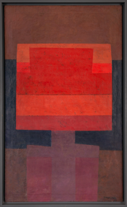 Los años que vendrían —la convulsionada y emergente década de los sesenta— estarían marcados por un tercer viaje inaugural y asistirían al desarrollo de una pintura fundada en la experiencia de un artista formado en la cerámica. En 1960, solitario y a bordo de un jeep viejo, Yrarrázaval emprende un viaje de cuatro meses por los países andinos, aproximándose por primera vez a los paisajes extensos y silenciosos del altiplano. Inicia en Mendoza, atraviesa la pampa y el desierto del norte argentino y continúa por Bolivia y Perú hasta llegar al norte de Chile. Allí se encuentra, por primera vez en persona, con los motivos que marcarían el tono, la textura y la estructura de su pintura durante los próximos diez años. Al retornar de esta travesía guarda silencio: pasan tres años antes de que vuelva a sostener el pincel con decisión. Surgen entonces sus primeras pinturas matéricas y terrosas, oscuras en un inicio, que con el tiempo comienzan a abrirse al color dominante de su producción posterior. Los títulos de estas obras —una suerte de literatura en forma de notas al pie— delatan el impacto que el territorio recorrido dejó en él. Attachement à la Terre (1964), la obra más temprana de esta exposición, presenta un plano que se desplaza con naturalidad de lo cenital a lo frontal, donde no importan tanto las formas como la aparición de colores tenues y la sutil diferenciación entre ellos.